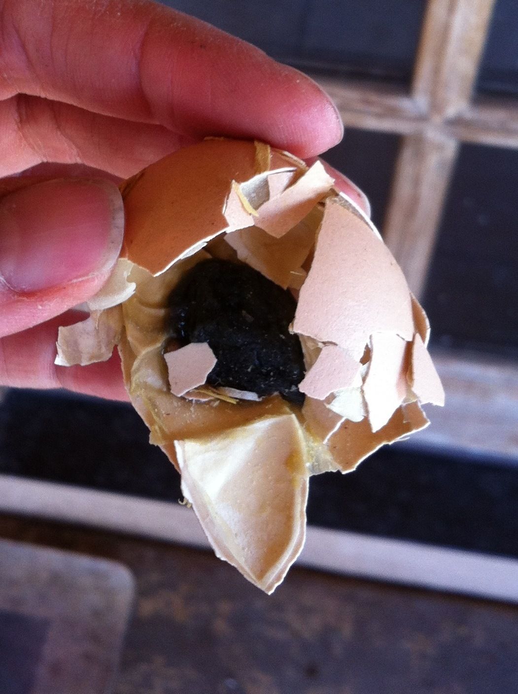 So I'm down to 5 eggs and I don't know how many more are like this. The others are intact. It's been a bad day.![]()