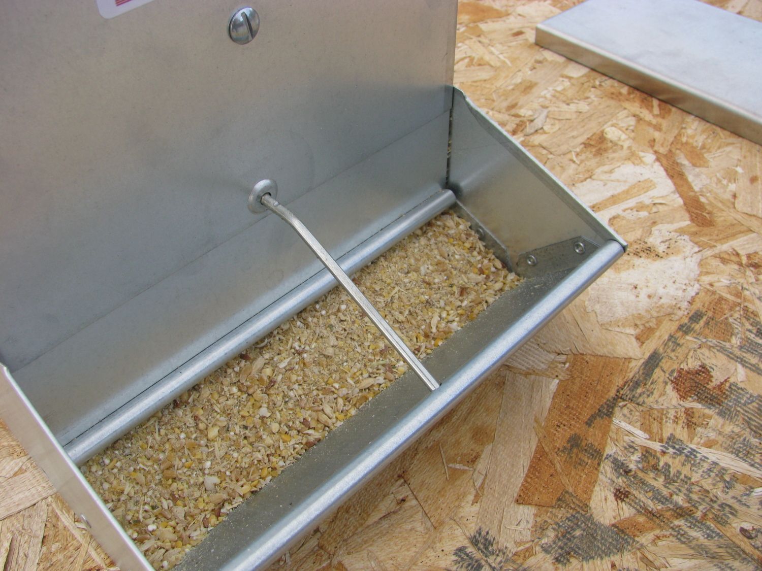 I've been using a small rabbit feeder for the adolescent peepers and losing a bunch of feed as they "beak it out" looking for the best piece, which is naturally at the bottom of the tray.