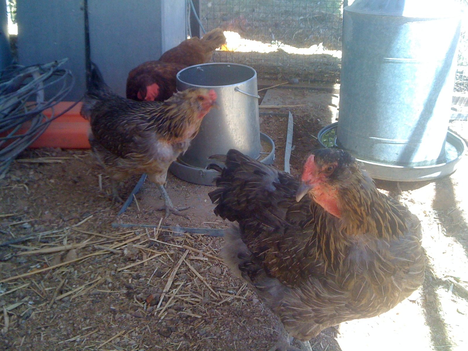 Here are the 3 that adopted us unexpectedly, 1 RIR and 2 mystery hens. The RIR is laying about 5 eggs per week, but nothing from the other 2.