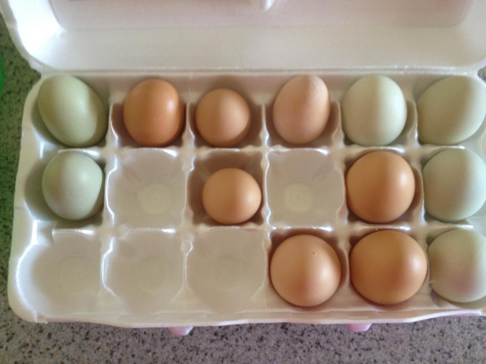 Ok, so most of you don't post when your girls lay an egg, but I can't help it!!! Today is the first time that I have gotten a bakers dozen and I am expecting 2-3 more eggs today. So the bakers dozen didn't just happen today but over a bakers dozen since Sunday. Used to take my two girls two weeks to make me a dozen and it's only taken three days. Whoop whoop. Here's my variety. Time to get my friends and family to save up them cartons.