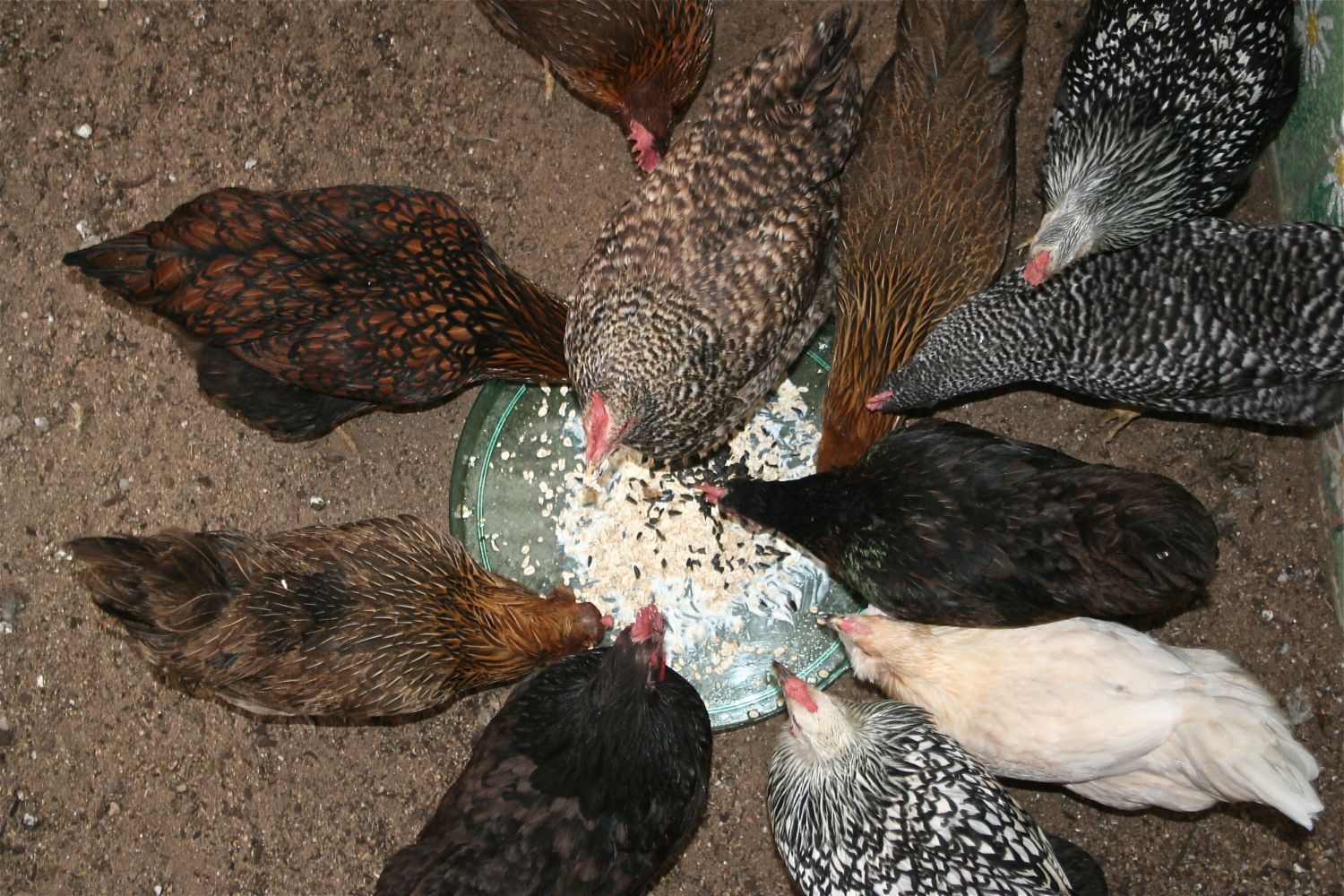 Here are my 11. I have 2-Silver Laced Wyandottes, 1 Gold Laced Wyandotte, 1 Welsummer, 1 Black Australorp, 3 Easter Eggers, 1 Barred Rock, 1 Cuckoo Marans and 1 Black Sex-Link.