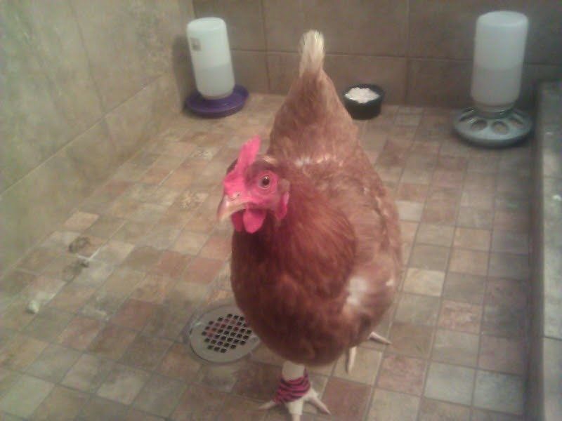Today is day two of White Tips bumblefoot recovery attempt. I have her in salt soaks, penicillin shots, and neosporin smothered all over the infected area. She is living in my bathroom right now, where the stone tiling in my walk in shower is cool to her feet. It seems to be going well! Her swollen foot (both have that dreaded black spot on the underside of the foot, but only one foot is swollen and hot) is not as hot to the touch today. She is not limping as badly today. She is not panting as much today, actually, she has stopped panting. Seems to be working!
