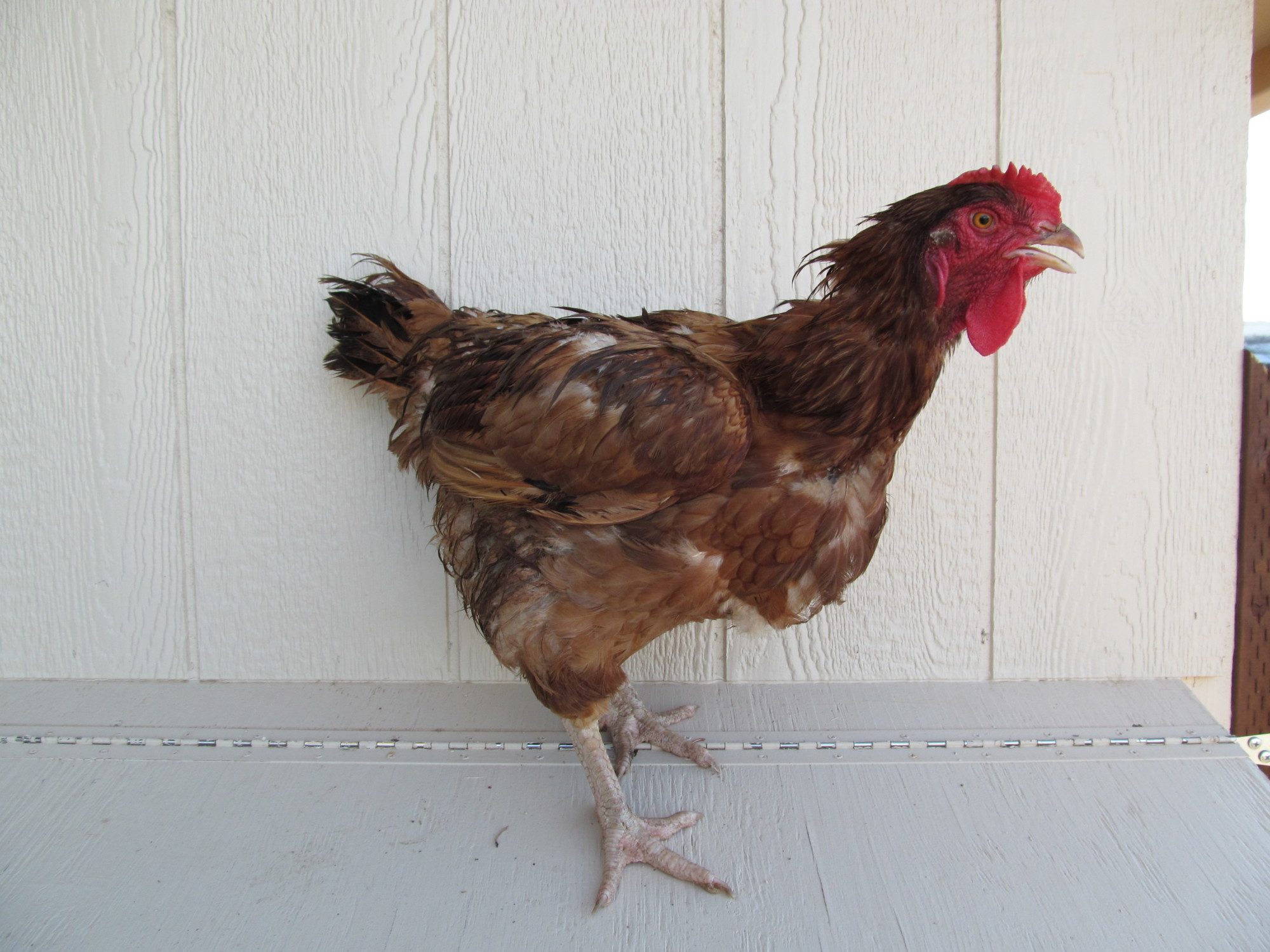 And my beloved One Dot - Red broiler who is moulting and half re-feathered and sopping wet from the chicken wash