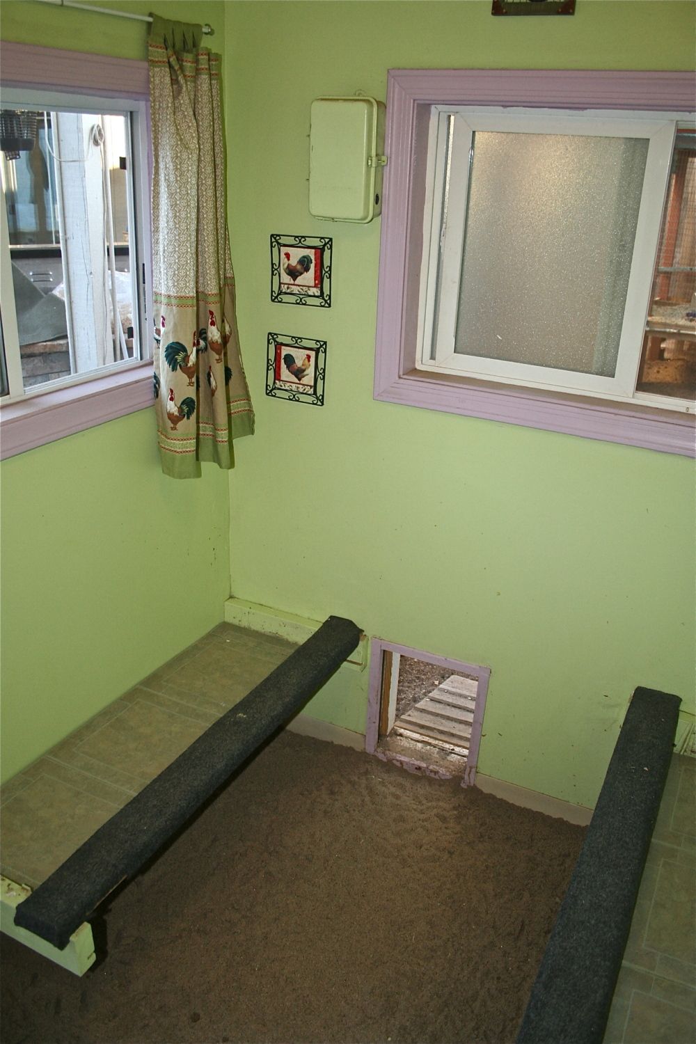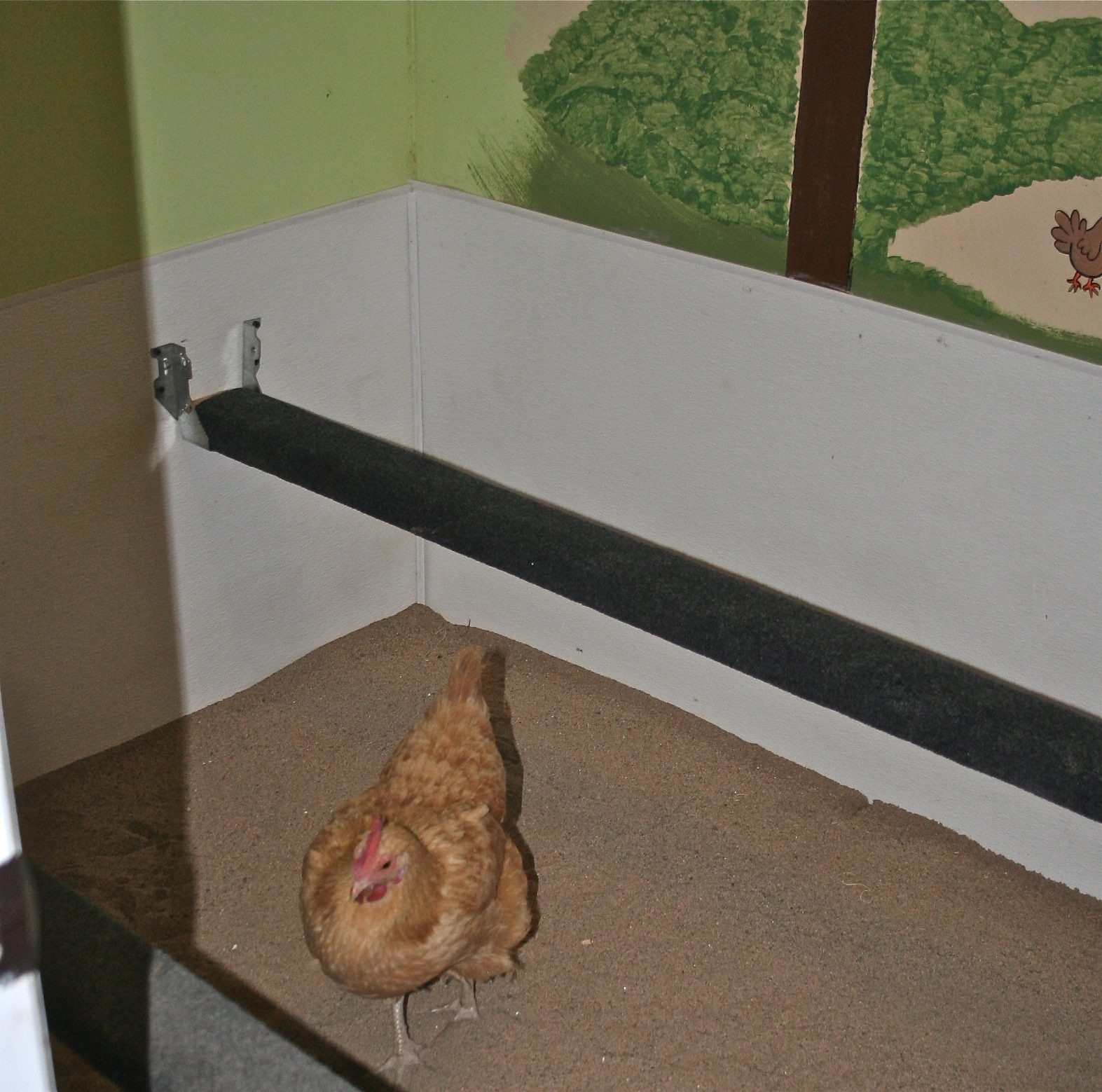 changed to no poop roost as it is easier to just scoop the sand in the morning (1st picture)