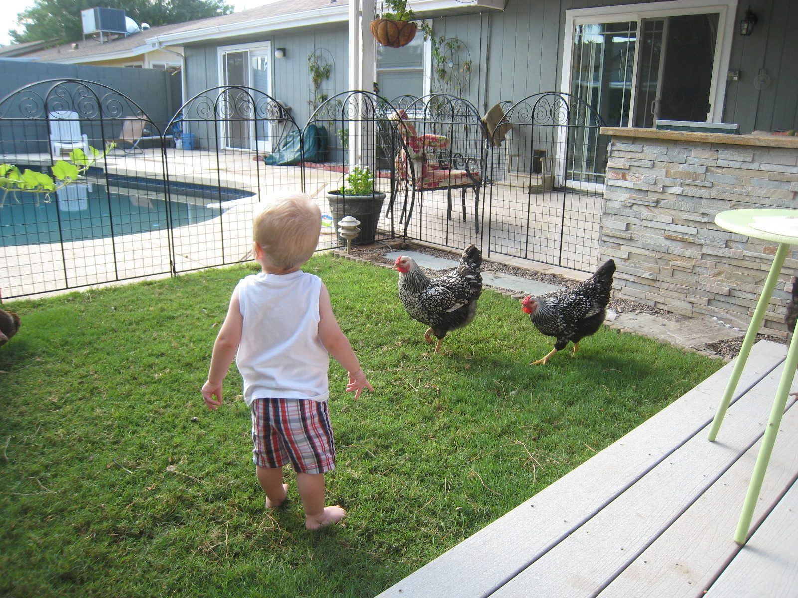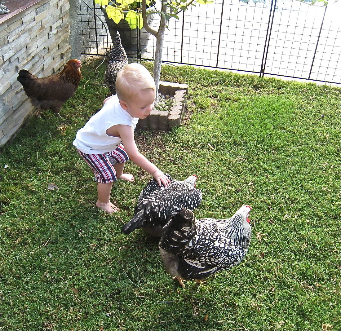 Fridays with "Chickma" and Cooper. I have been demoted to second best now as Cooper (16 months old) wants to see the chickens when he arrives in the morning. He loves his "bok bok's"