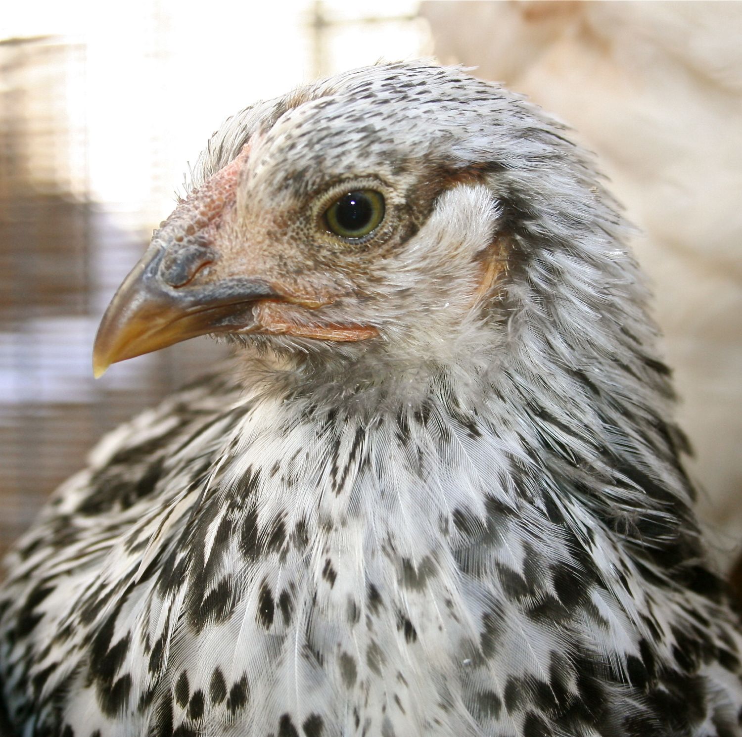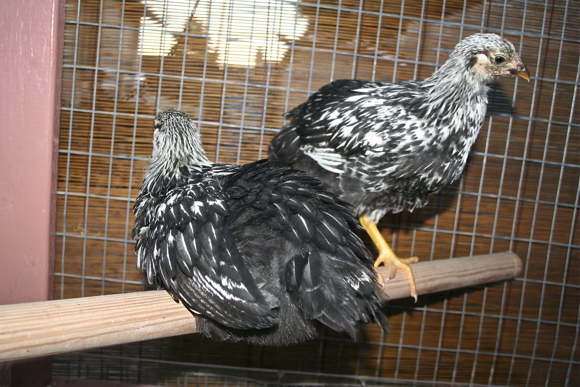 I bought 2 Silver Lace Wyandottes, however I believe I have one not two. Their combs are developing now and they are not the save. Colar variations dose not bother me. I have pictures of their heads and feet. The blacker one is growing a single comb and her. Waddle is starting to develope. Right now it is more of a pink rose color, and her legs are darker. The one I think is the Wyandotte, is developing that double comb wrinkly thing (can't remember what it is called), And her waddle is a hair smaller, not enough to be a breed growth rate indicator. The black one also has white feathers on upper part of her wing. You can see a fant lace pattern with the gray. If the gray is a a Wyandotte (I think she is), is she going to be a blue lace? And what are the options for the black one? Even her eyes are different? :barnie.