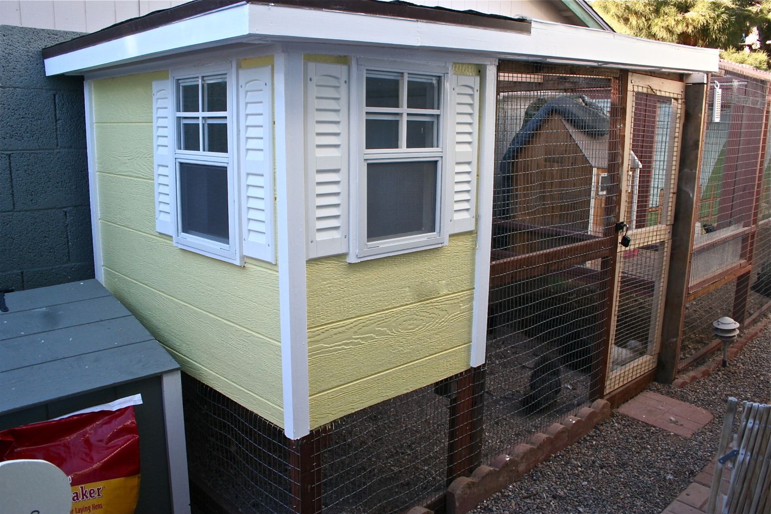 We had a crappy day yesterday. I let my birds out to free-range at 8am, as usual, while I piddled around the yard doing chores. Went in at about 8:20 to take a shower and the phone rang. I never get out of the shower to answer the phone, but something had me answering. It was my neighbor at the end of the block asking if I was missing any chickens. He had just seen two birds running across the street to the next block over. I surely didn't think they were mine, but I raced out back to check on them. What I saw was complete carnage, feathers everywhere and my poor BO, Waldo, dead on the ground. Not another bird to be found. I ran down the street and around the corner where the two birds were spotted and found my Delaware and one of my EE hiding in some dried weeds. They let me pick them up and I quickly searched for others. Went back to my house and saw my BA standing in the middle of the yard, apparently in shock and I grabbed her up and put the three into the run. It was so crushing that more than half of my flock was gone. I searched the yard again and then looked into the back alleyway, right there in front of me was a coyote, eating my other EE. It was barely bothered by my presence and only took the bird and ran away when I hopped over the wall and went after it. So, two birds were still unaccounted. For one I had high hopes, there wasn't a single feather from Mrs. Beasley anywhere. But most crushing was the massive amount of feathers and a wing from Weegee, my CM, the top bird in the flock. I searched the yard for another fifteen minutes or so and then searched the surrounding blocks and alleyways for the next hour, but finding no trace. I just killed me thinking that she could be lost out on the street. When I gave up searching and went home to look in the back yard again, right there next to the coop was Mrs. Beasley and standing right next to her was Weegee. It was one of the few times in my life I was sure that I was hallucinating because I was so certain she was dead. But I wasn't. She lost a good portion of her feathers, including most of the flight feathers from one wing (which is why I thought I saw her wing on the ground), but escaped with no other obvious wounds. So, in the end, we were fortunate that only two birds were killed. They stayed up on the roost for a couple hours, but by late afternoon, they were anxious to be let out of the run, which was not going to happen. I think the coyote came back this morning because they still have not come down off the roost.