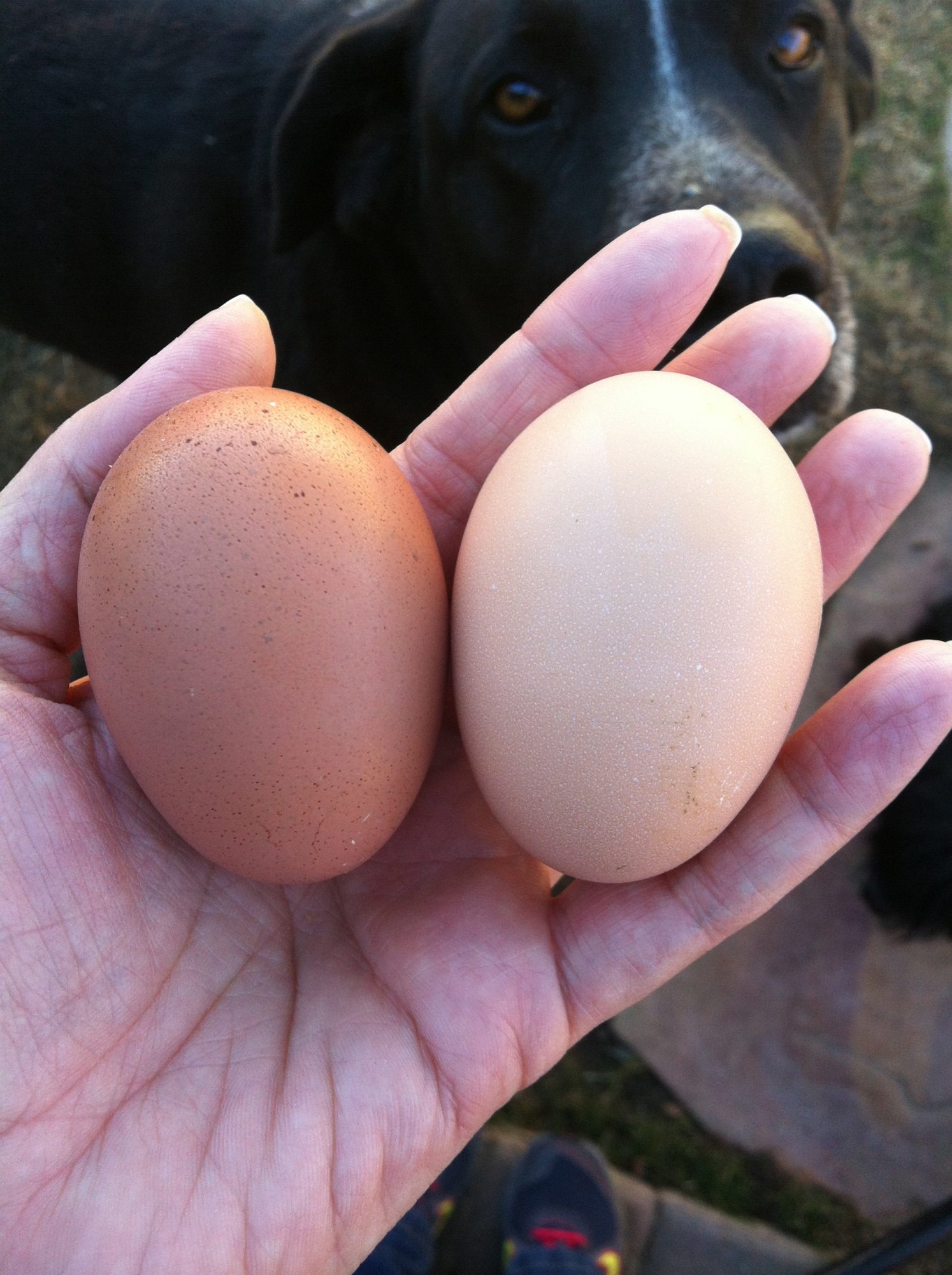 I *THINK* my blue Marans finally laid her first egg! I didn't catch her in the act, but I found a darker brown egg this morning.