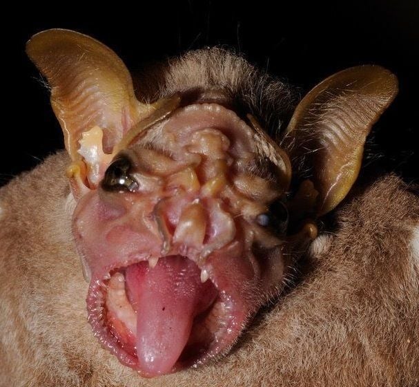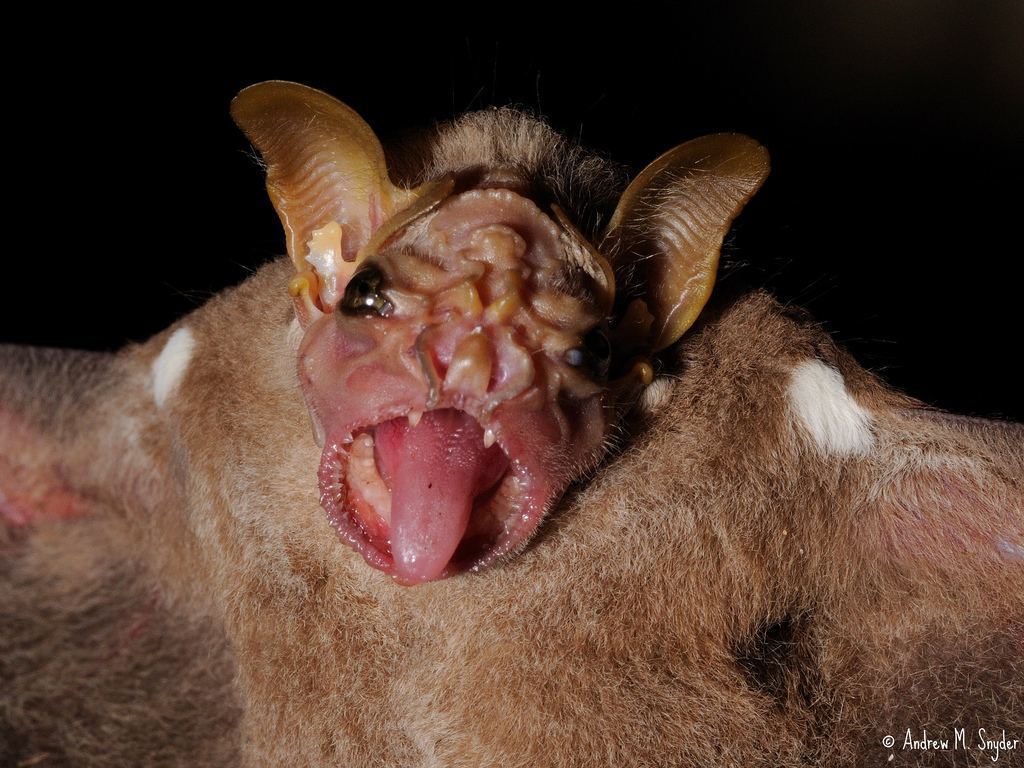 One of my favorite bats is Centurio senex. We were mist-netting for bats in Costa Rica the first time I ever saw one. It has a face only a mother could love...or a bat lover. Oddly enough, it has a flap of skin that it can move up to cover it's face, at will.