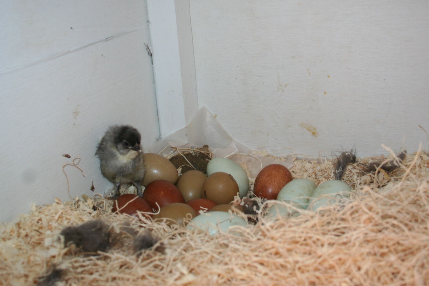 2 Olive Eggers hatched yesterday and 1 Black Cooper Marans hatched today.