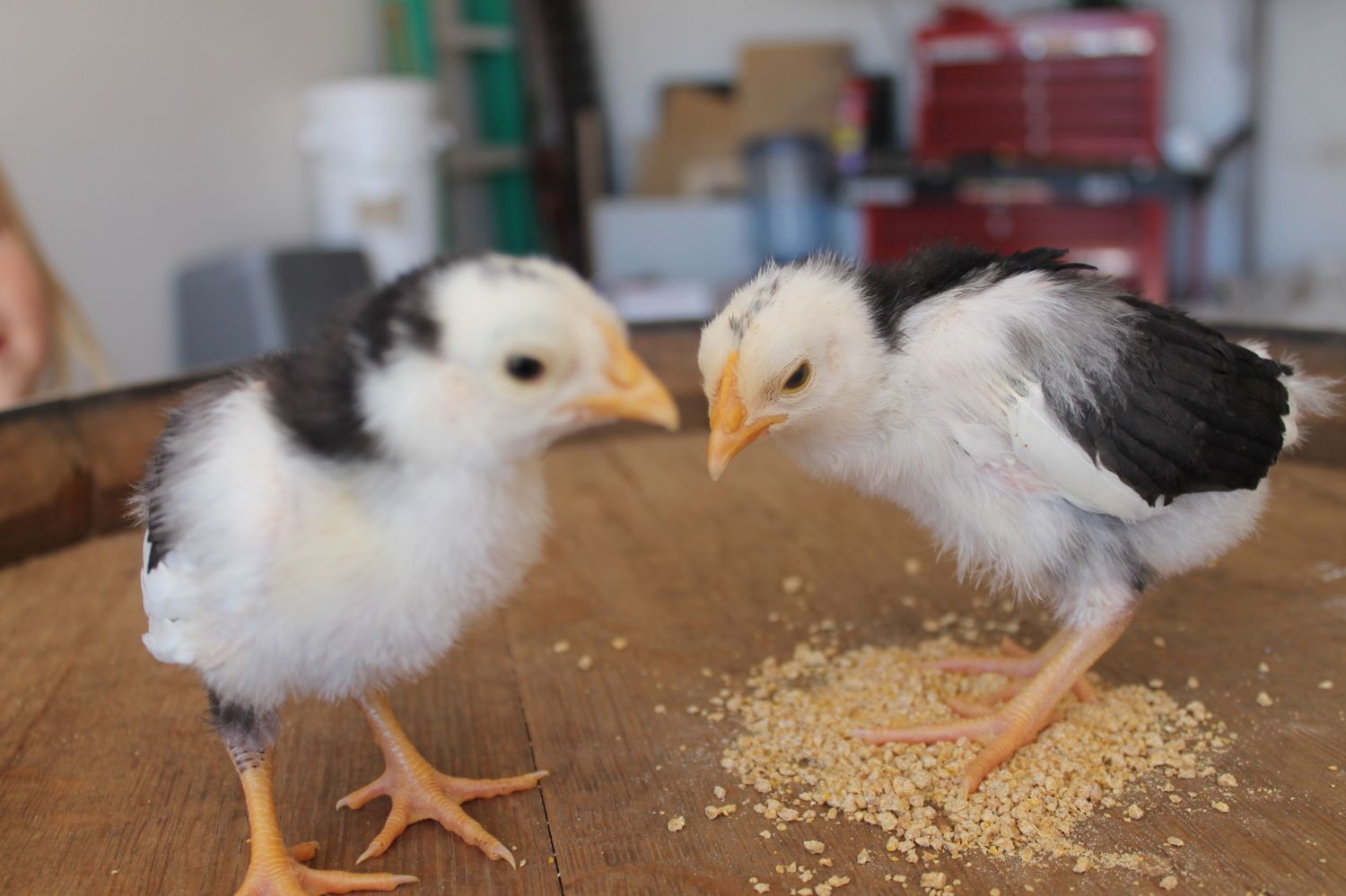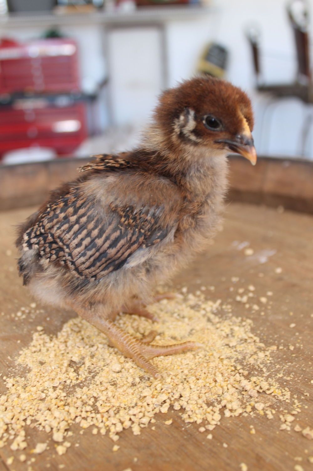 We got welsumers, and jungle fowl.. 2 different chicks were in one bin. So they all looked different. I wanted to make sure he picked them out. As soon