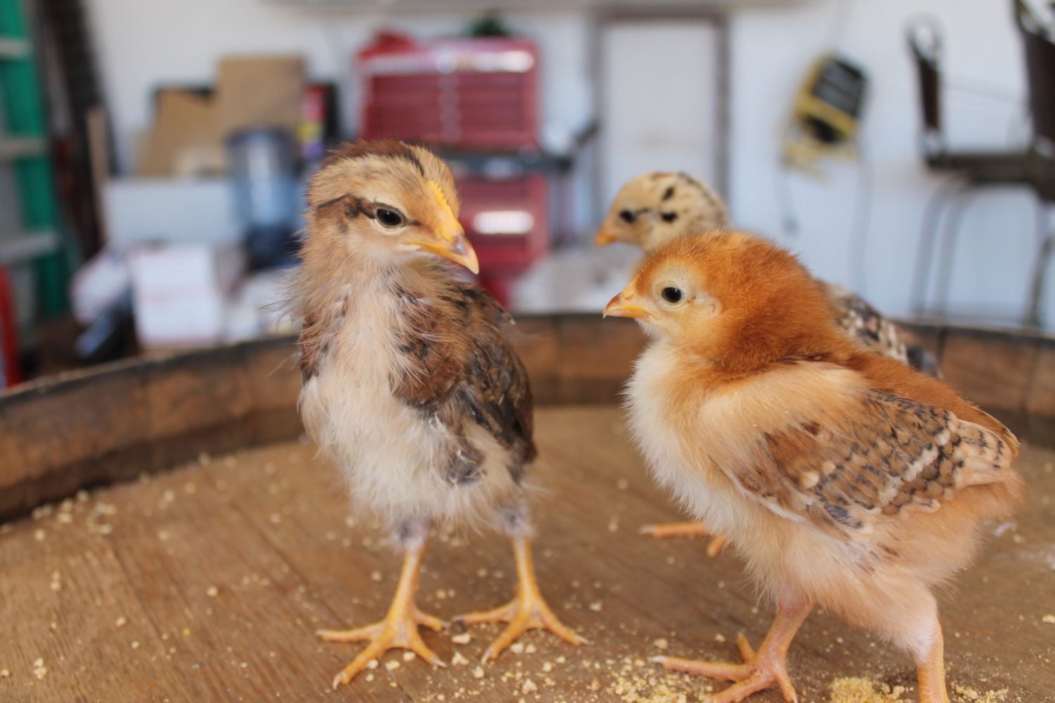 Here are my 15 at about 2 weeks of age. I bought the white/brown/rare assortments from Meyer (along with a splash maran, copper maran, and a blue ameracauna males but I also had 3 deaths in the first couple days and wasn't sure of what breeds passed) and have some ideas as to what some of the breeds are.