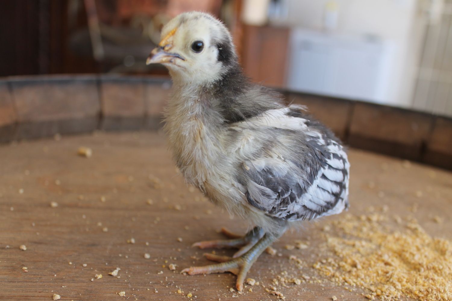 The bottom pic looks like maybe a Silver Laced something, no head poof or furry legs so I'd guess Wyandotte though I've never personally had a laced chick but that looks like what the coloring on the feathers is coming in as.