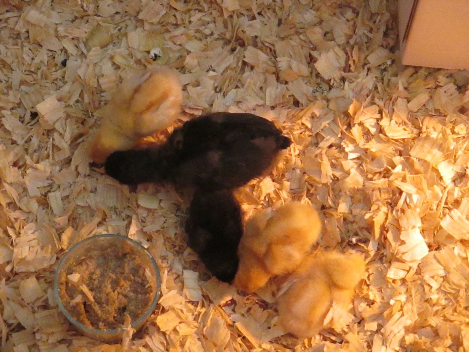 Here is 2 pictures of my 1 day old Marin chicks from the previous Sunday! :D