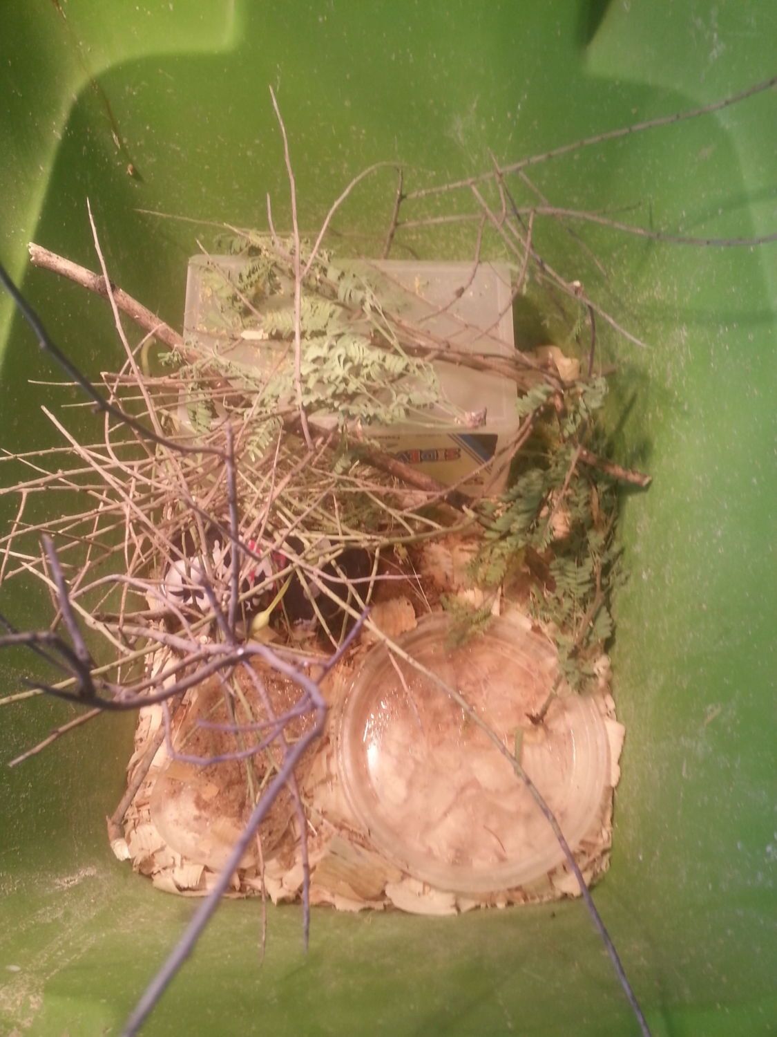 See I made him a little safe house. He is so tiny!!! Crap this means I will now have quail.