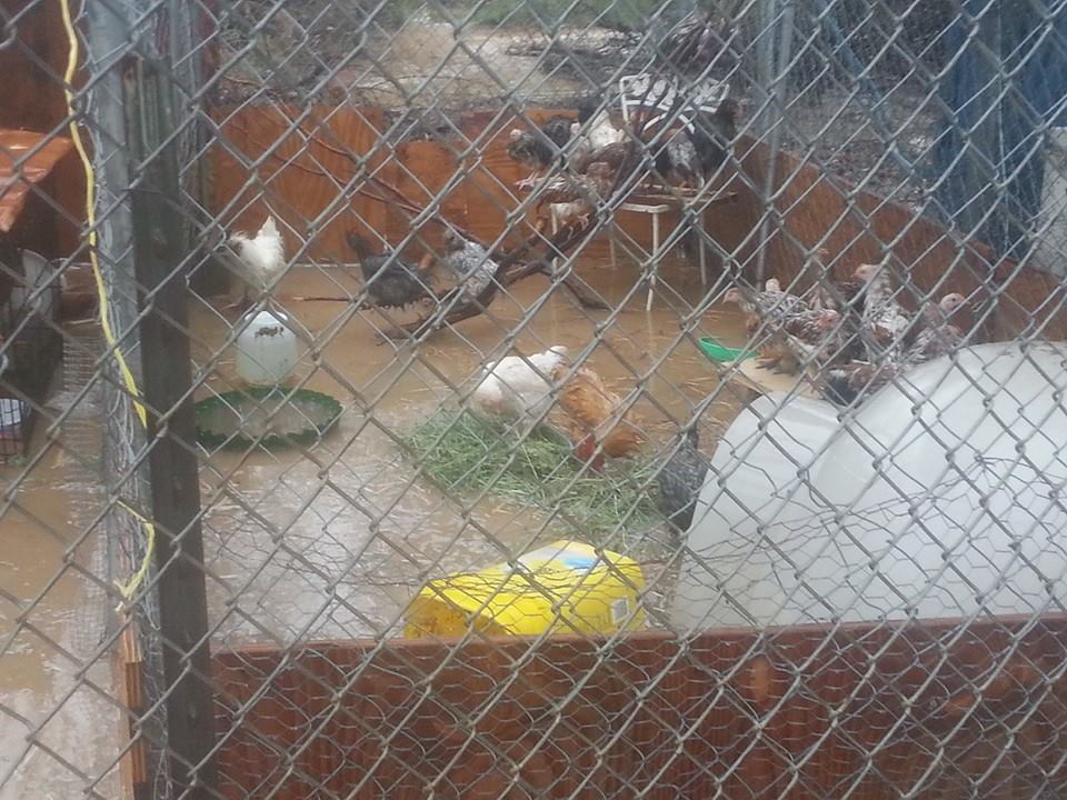 That is a lot of rain there... @littlechicken your ducks are beautiful.. Has anyone heard that one large rain drop in the chickens nostril can drown them??![]()