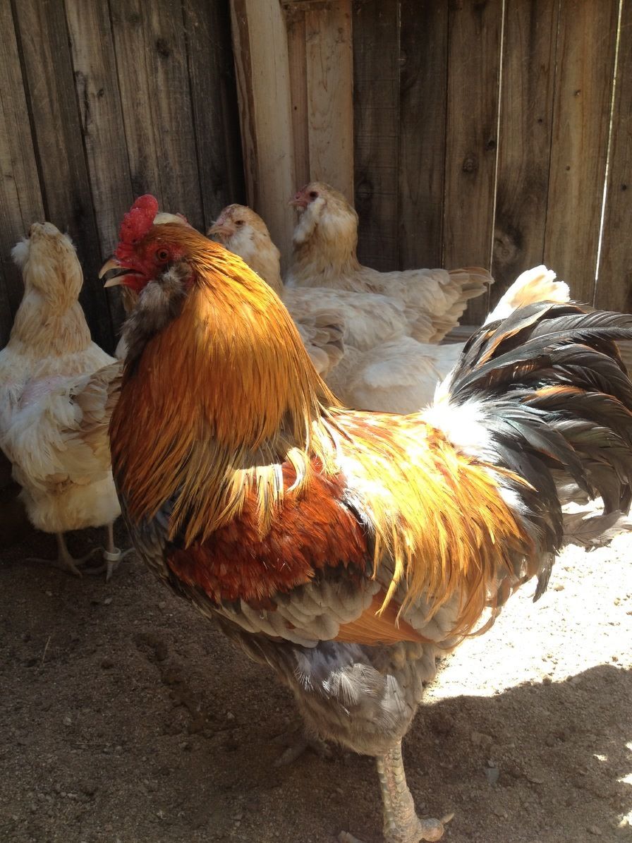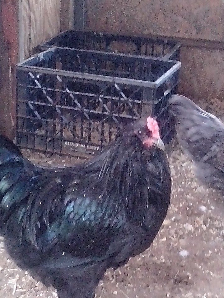 who is the Blue wheaten from?? Nice birds! I got the old rooster from Kathy in Oro Valley. He was her old flock sire and got replaced. He is on two hens right now that are laying. here is My Blacksry he was just eating FF so he is dirty. Here are my girls I need a good BW or W AM roo for