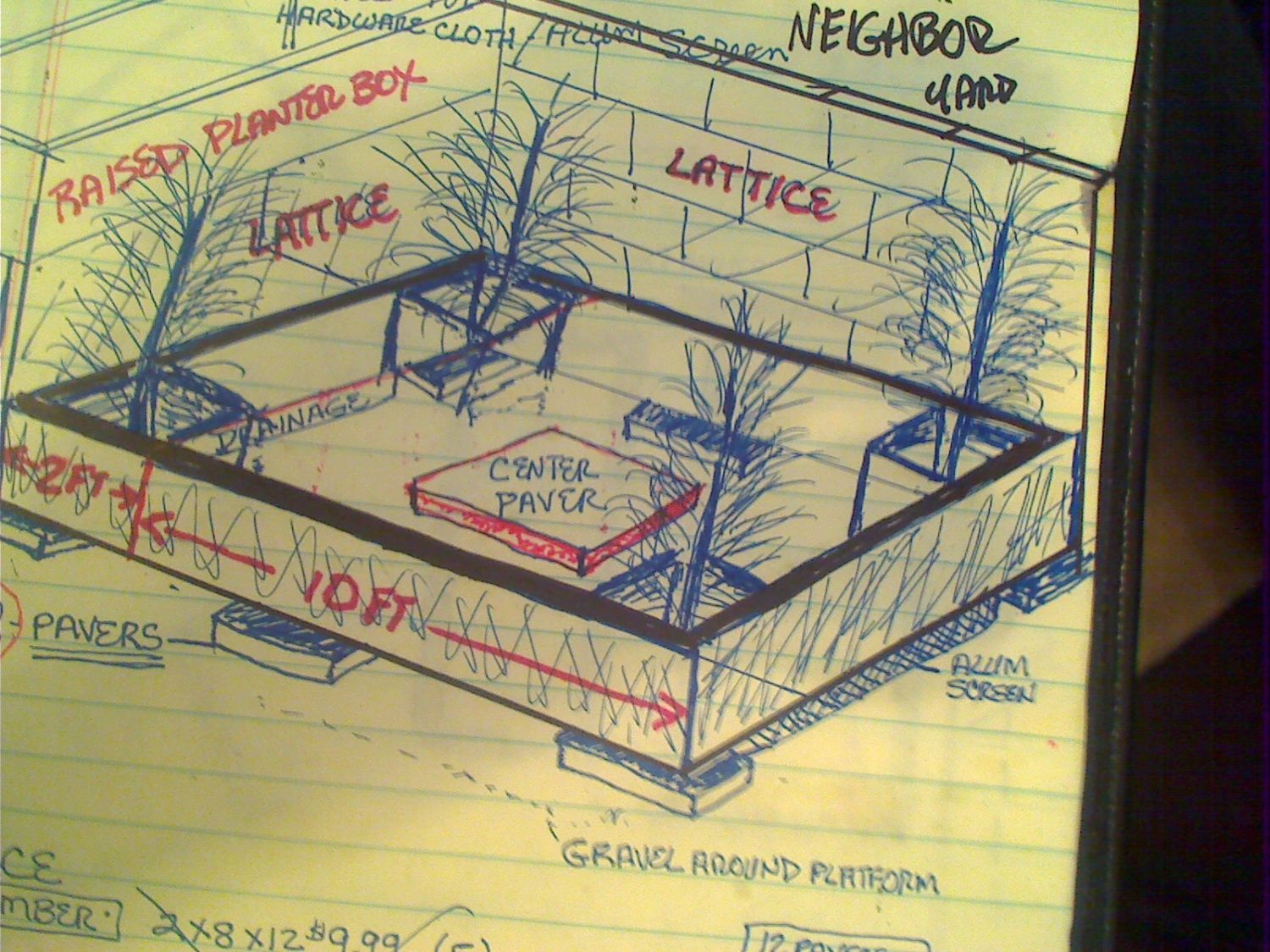 The wasted space to the right next to the neighboring wall: This is without the flooring installed. I would also like to add some lattice work and grow some type of vines around that area.