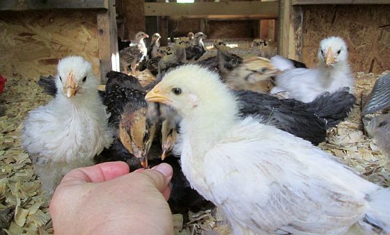 The four Delaware chicks we got are the most friendly so far. They are very assertive and they will be 3 weeks old on Monday! :-)