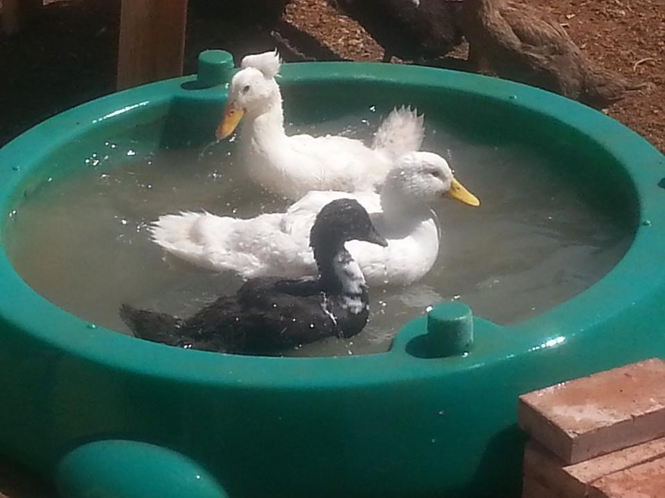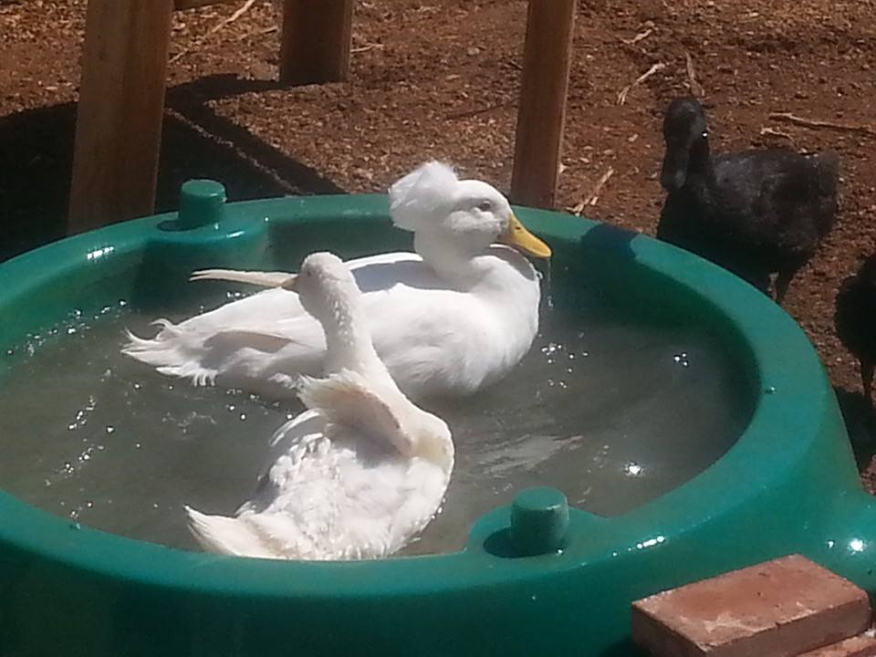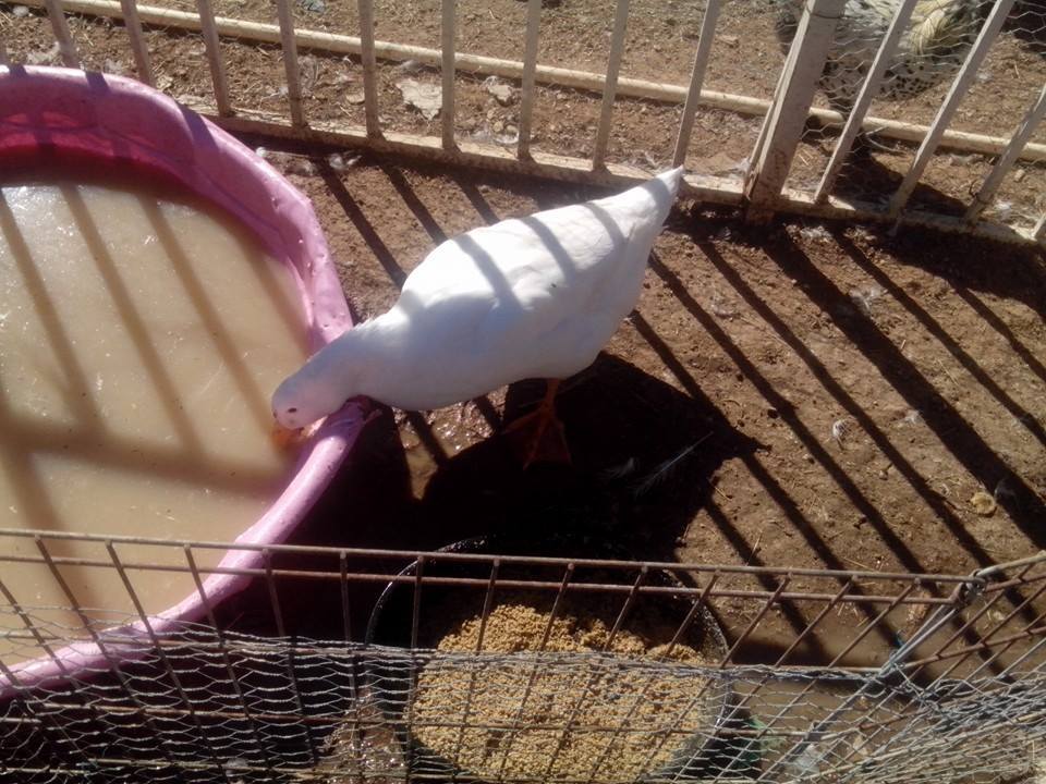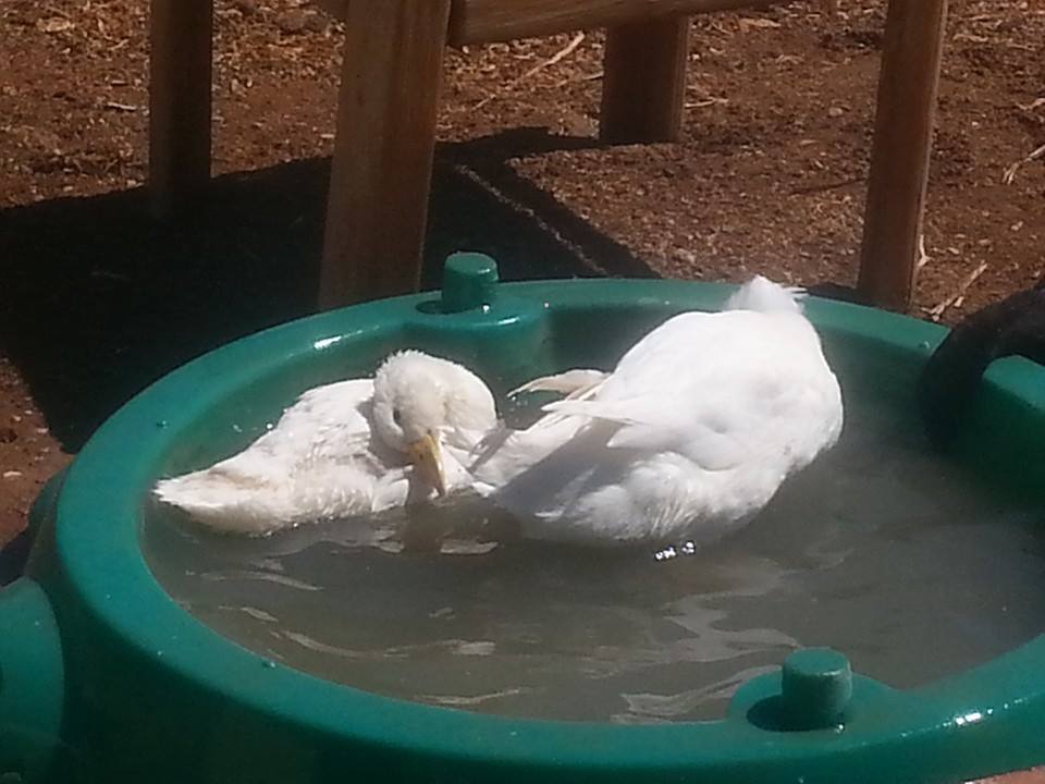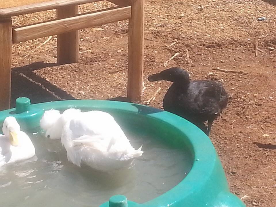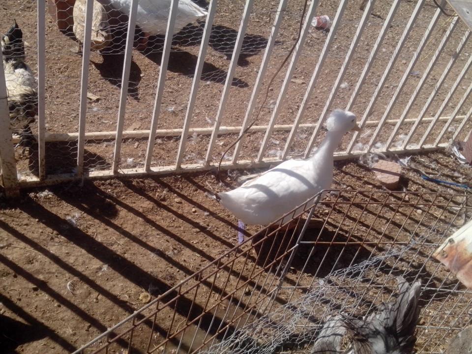It probably was a red-tailed hawk. They are the biggest around here, I'm pretty sure. They are beautiful, and I would hate to kill one. Wildlife is too important to keep around! We have a Cooper's Hawk that tries to catch wild quail in our yard. He doesn't seem interested in the big chickens. I just put the littles out in a new coop (super deal on craigslist!!!), but they are covered, and I bring them in the shed at night in their box. While I was collecting them at dusk the other day there was a massive great horned owl sitting in the Palo Verde tree above the coop. Same night a pack of coyotes started whooping (don't know what else to call it) either in our yard or the neighbors. I ran out in my tank and undies and bare feet to run them off. Glad it was 3:30 AM so the neighbors couldn't see me! I didn't see how many there were as they ran off before my eyes had a chance to adjust to darkness. From last week, here is a paw print of the predator that took away one chicken (Crannie, my fave.) and Pepito, the duck:
