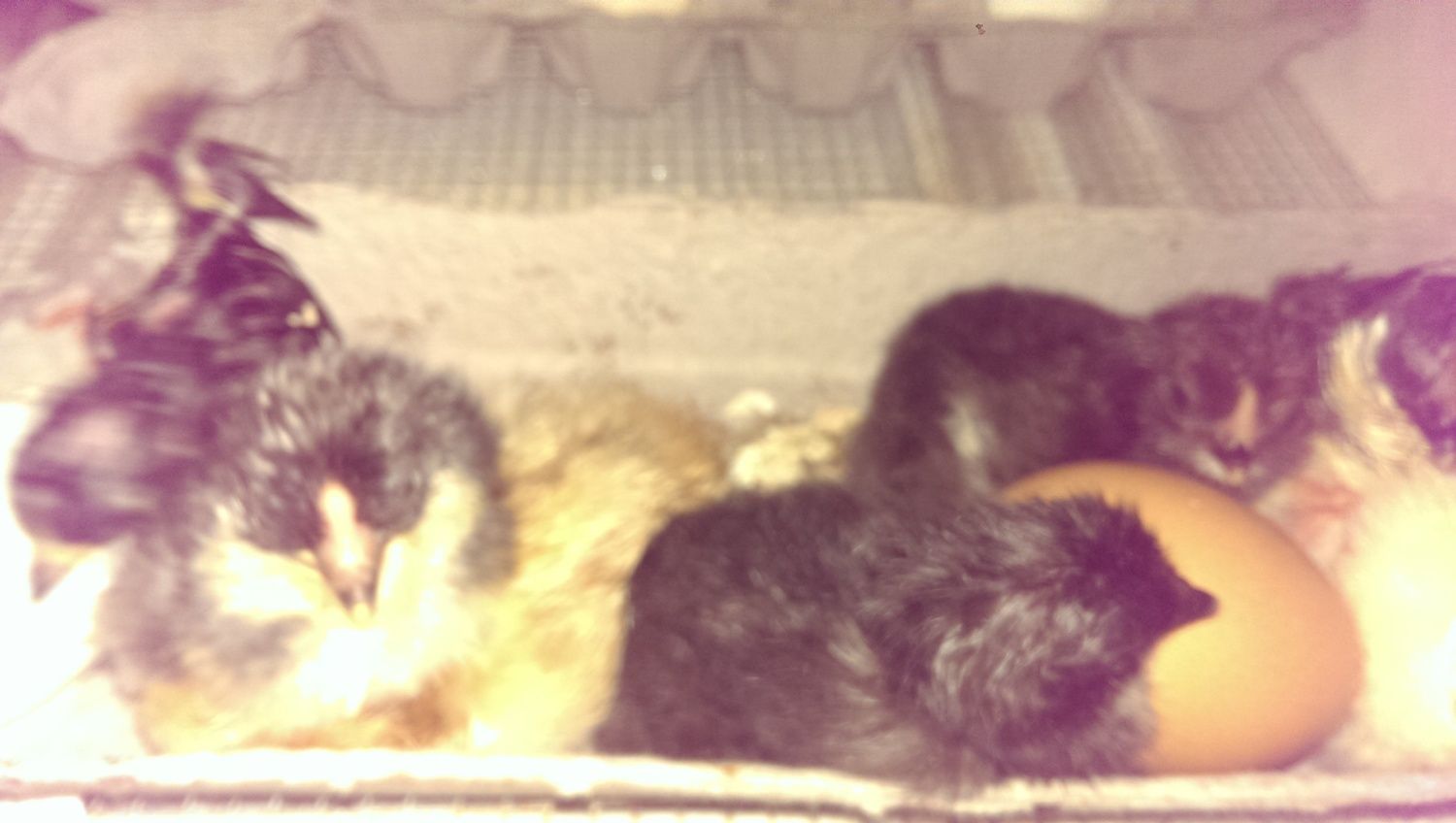 I have seven live chicks! 2 olive eggers, 5 barnyard mixes, 2 of which are Brown leghorn-ameracauna crosses. My first decently successful hatch. I have one OE that has pipped for at least 12 hours. I peeled back a little shell and there is still blood, so I'll wait till morning before I do anything more. I helped one other olive egger out, but it was ready. I have three more Barnyard mixes pipped, and one without action, but I think I heard it chirping earlier.