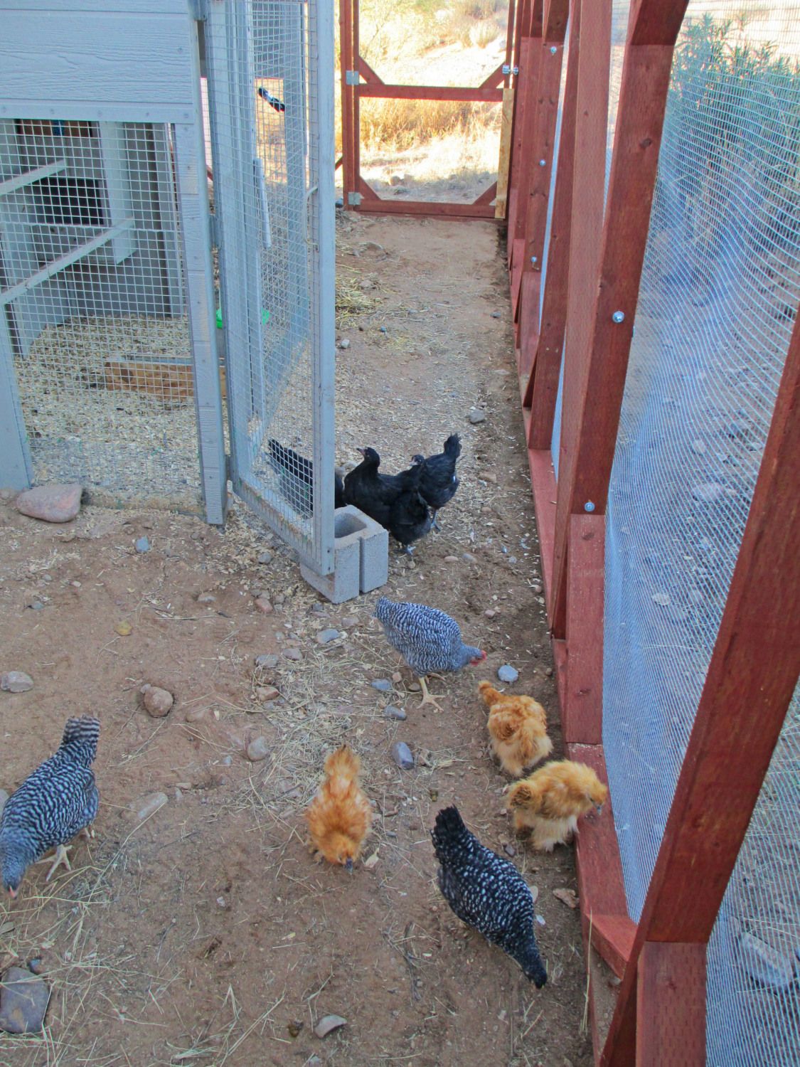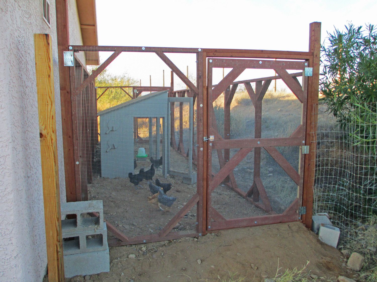 Your set-up looks nice. To protect from aerial predators, we used camo cloth - not only does it hide the chickens from the predators, it also gives them some shade.