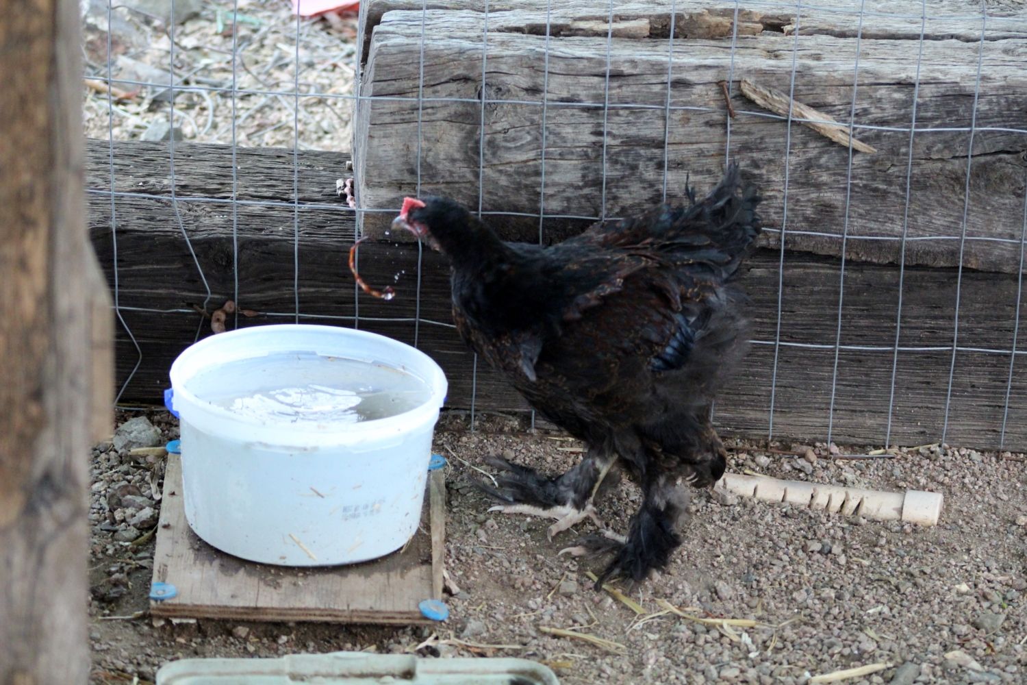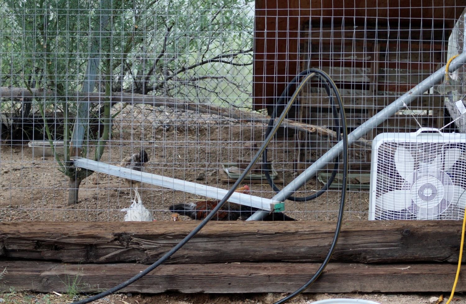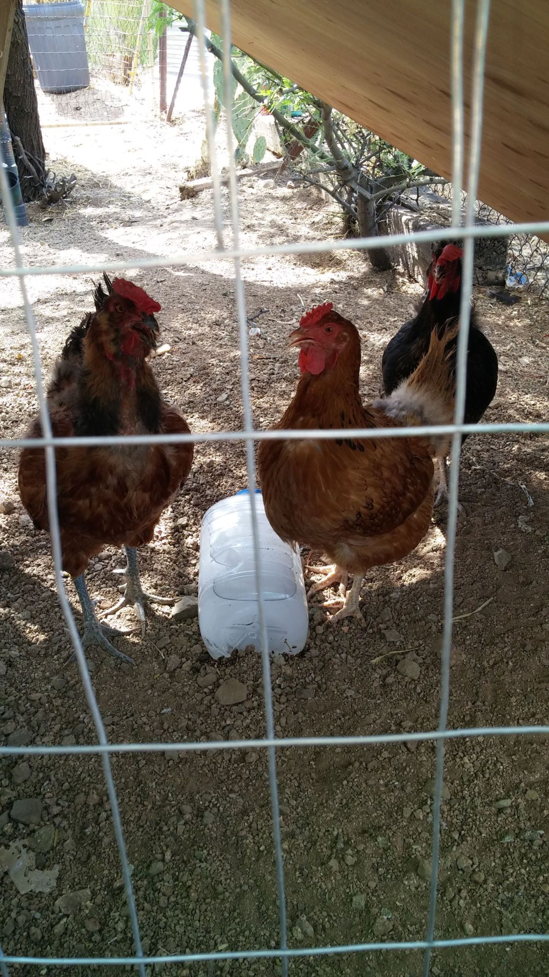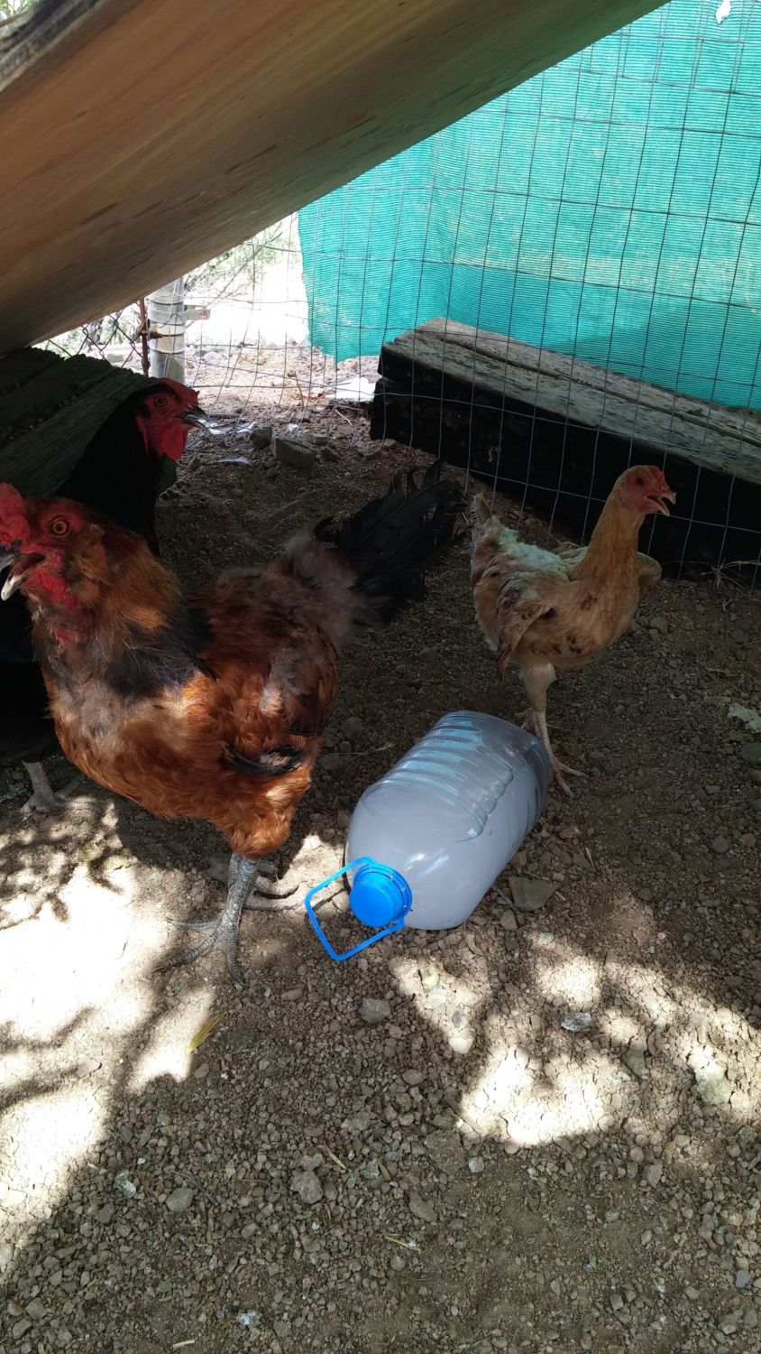 ) on June 14th and of course the heat had already started. I started reading up on taking care of chickens and came across this site, LOVE IT! I finally joined a couple of days ago, lol. Anyway, this past summer I did use frozen water jugs, frozen water bottles (in their drinking water) and a box fan. My poor girls and guy were always hanging around or on the frozen jugs. I also hosed their run down every morning early afternoon. They come running when they see the hose, lol. I was having to change the frozen water bottles in their drinking water so often I started freezing plastic gallon ice cream buckets more than 3/4 full. They seemed to last enough that I only had to do it once a day. To make sure they were frozen solid, I had a couple to rotate so one could freeze for at least 24 hrs. One shelf in my upright freezer is for my chickens. Their run is built around 2 trees (mesquite and palo verde) and we have shade screen on top and on one side. I'd spray them down and use them like cooler pads. We also have a sheet of plywood wired at an angle to give them more shade. They made it through with flying colors!!!