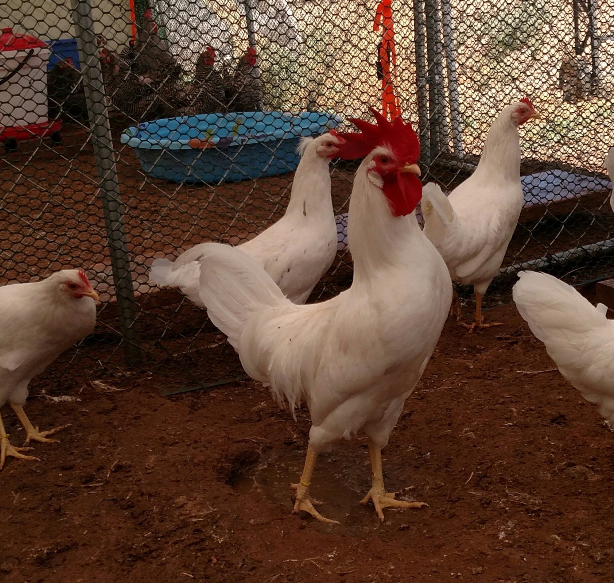 @ejcrist, here are some pics of a California White cock and some of his pullets. On the pullets, check out the sparse black spotting. At hatch, this is how you tell the difference between the boys and the girls.