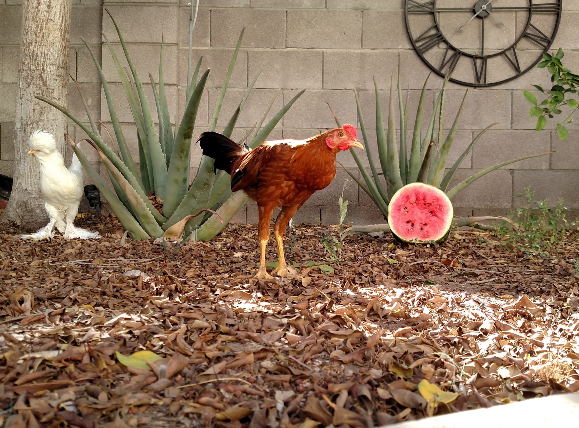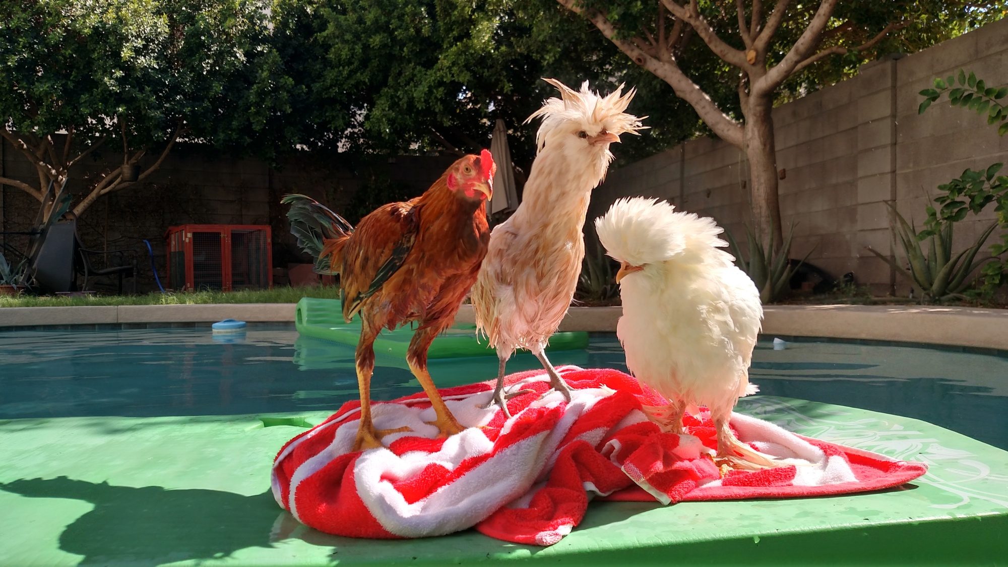 One of my favorite Naked Neck rooster was stung in the face by a scorpion. Luckily I just happened to witness the entire thing and got to him in time. The sting of our Bark Scorpions is just as deadly to a chicken as it is to a human, a dog, etc. Heisenberg (my NN rooster that was stung) jumped straight up in the air, ran a few steps and then sat down and began trembling. His entire body was tight as if all of his muscles had contracted simultaneously. I immediately brought him into the house and treated him with a Benadryl tablet that I'd pounded into a powder and mixed with water. It took him about two hours to recover sufficiently to return to his flock and he wasn't entirely stable on his feet until the following day.