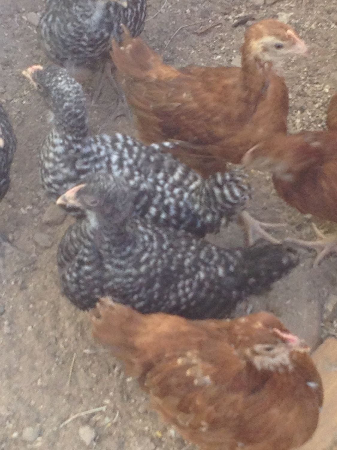 After looking at your birds it looks as if you may have one RIR rooster. How old are your birds?