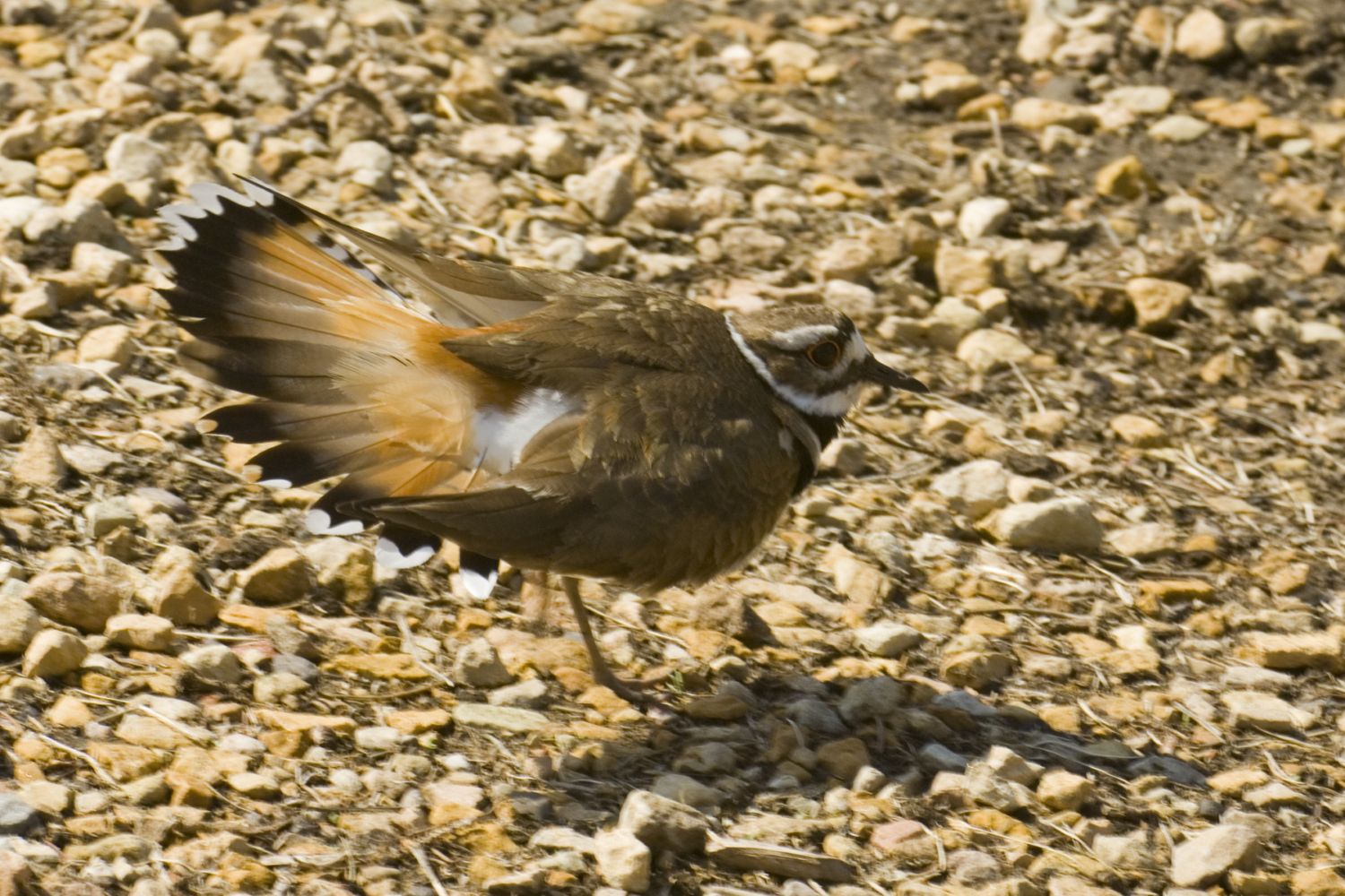 kildeer pretend they're hurt to lure things awayI came across a killdeer that appeared to wounded just off my driveway.As I got closer....it kept moving away from me. Finally it got up and ran away. I was thinking that was really strange. It acted almost like a grouse, luring me away from a nest. Guess what......it was. I found the nest in my drive way.