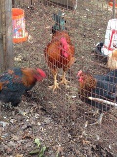 My 2 males and the lady who laid her first egg today! was so proud! she went right to a nesting box like shes been laying for years! large brown one too ...for a first egg.