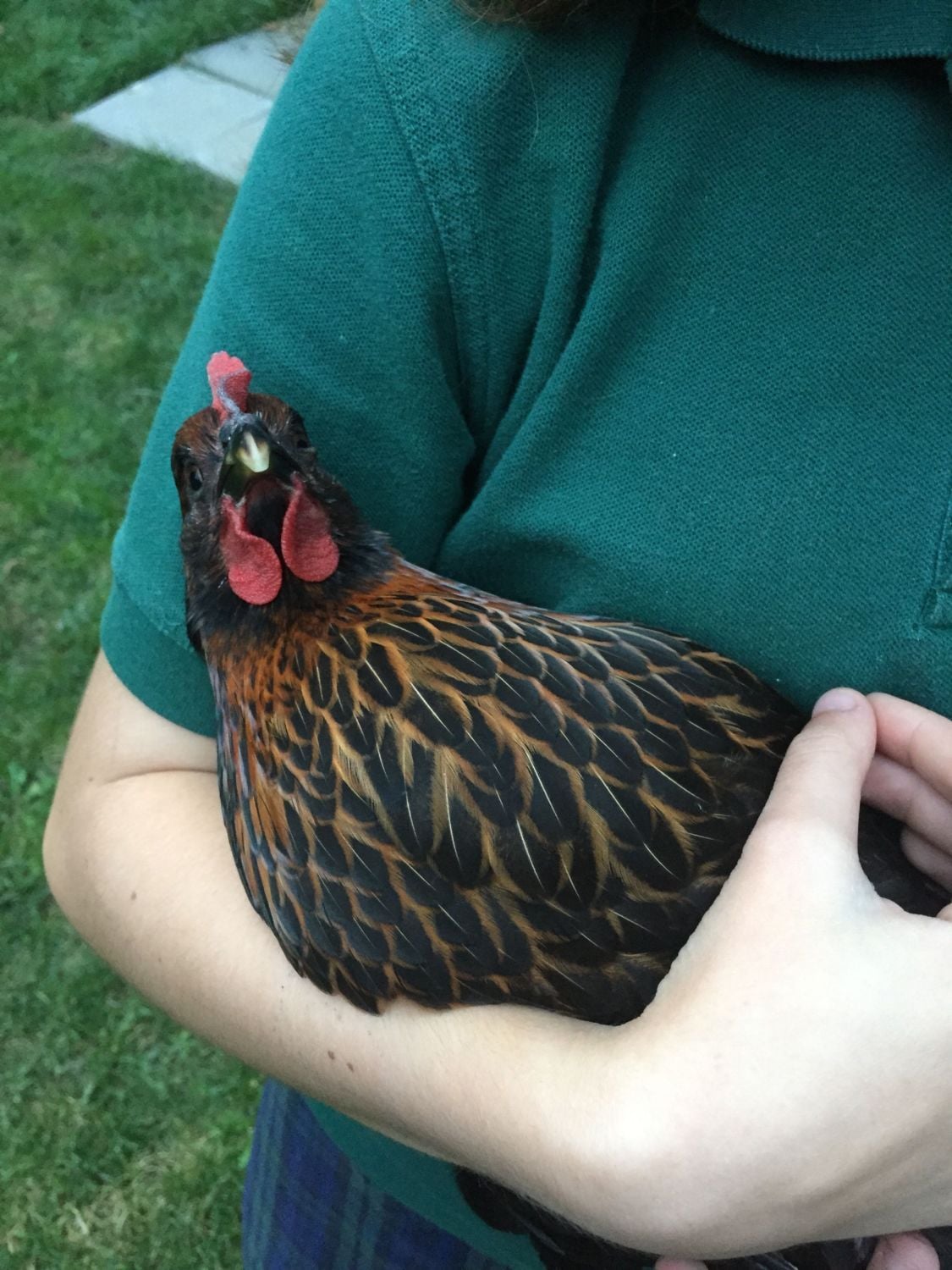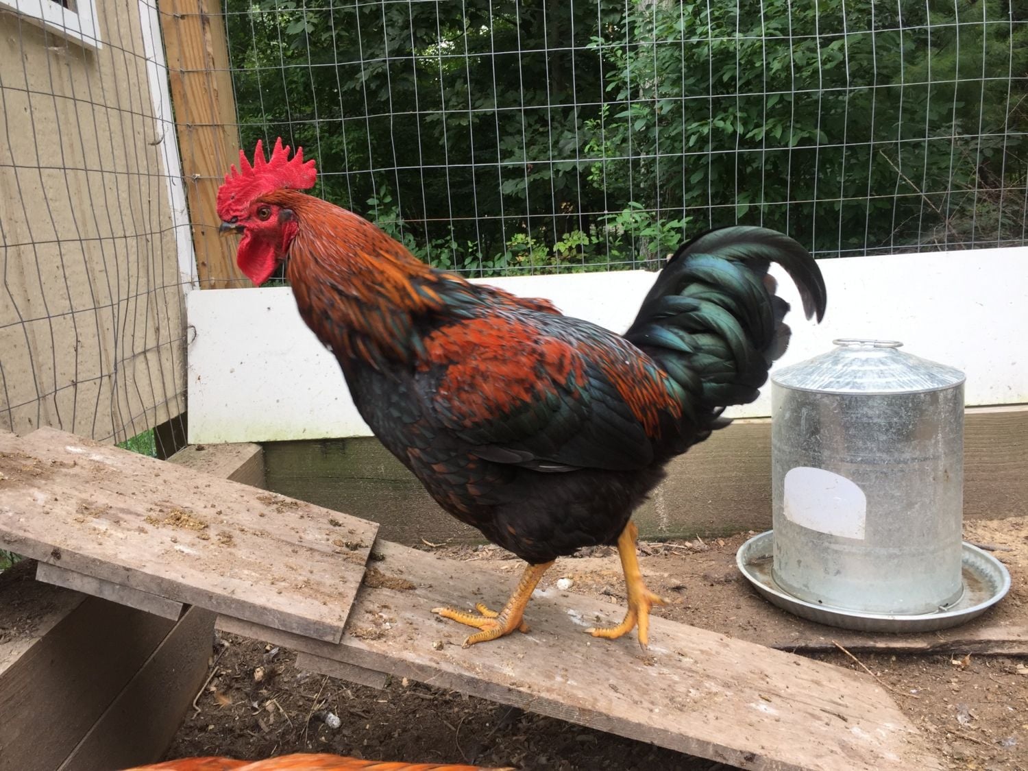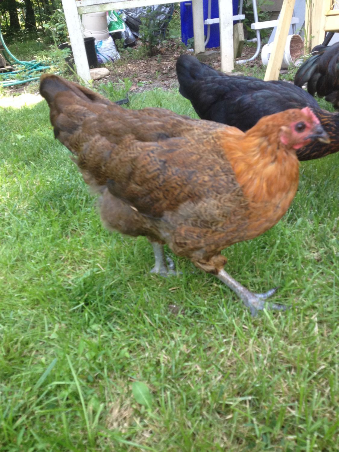 I too bought 5 Blue Asian chickens from Tractor supply, only one of them looks like the picture you posted, black with the copper head and no red crown. She is completely different from the other 4 and she clucks differently too, she almost sounds like a goose, with a honking noise. Did she get mixed up in the bunch or is she a Blue Asian but just a different breed?? Thanks