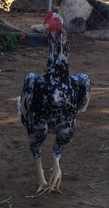 A few months after taking the pics I posted at the beginning of this thread, my hens had chicks. These two roosters were among the few that were hatched from the same batch. Both will turn two January 1st. One is spangled and the other is blue...they are huge! Just thought I'd share.