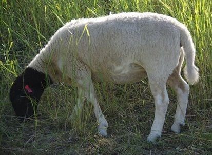 Fat is stored their in the tail base and you can see the thinning out of the rest of her tail...described in the Persians as thick as a pencil. I can see the Persian influence in the deep chest (manubrium) of the Dorper and tail shape hints at this origin too.