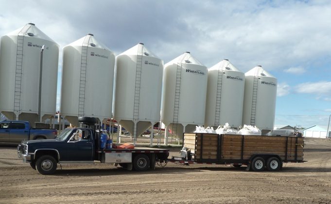 There are four totes of grain in the trailer (l00kit the amount of silos of grain!)