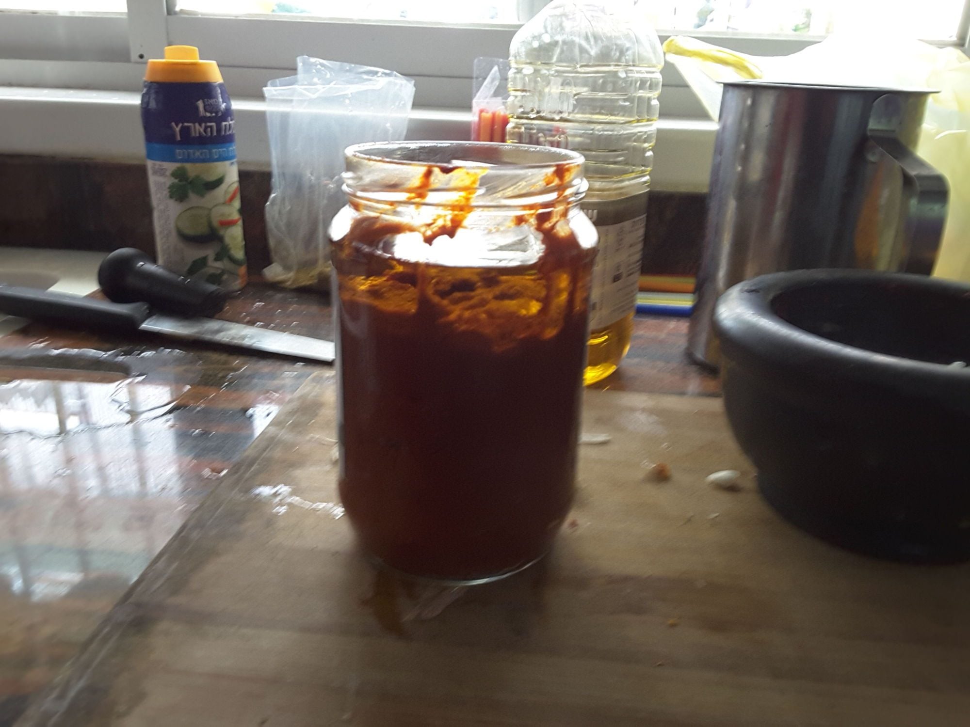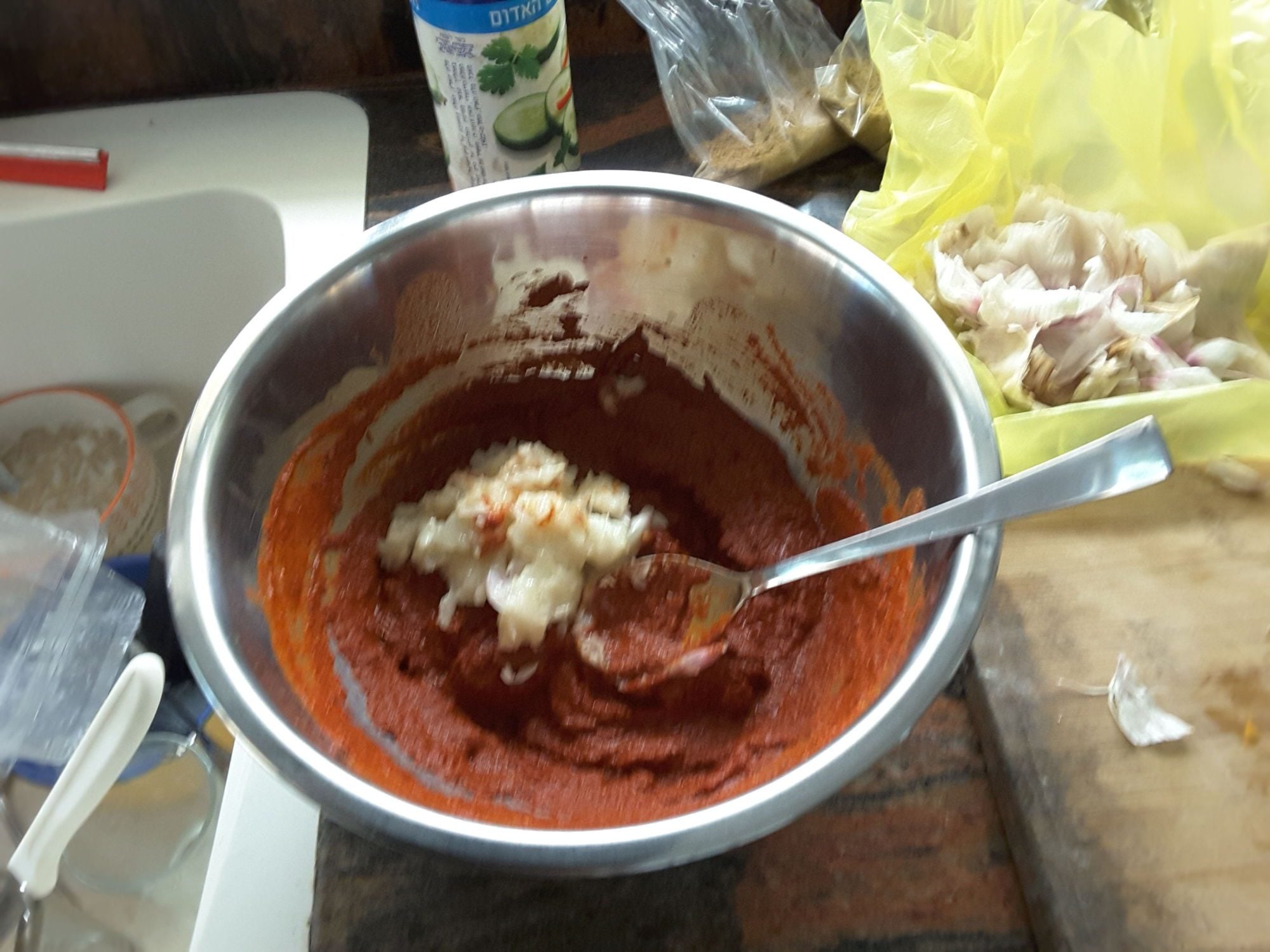 The "filfl chouma" chili and garlic in Libian Jewish Arabic is a wonderful past made from hot paprika powder, cumin, caraway, salt and a lot of crushed garlic, and if you covere it with some vegetable oil, it will last forever.