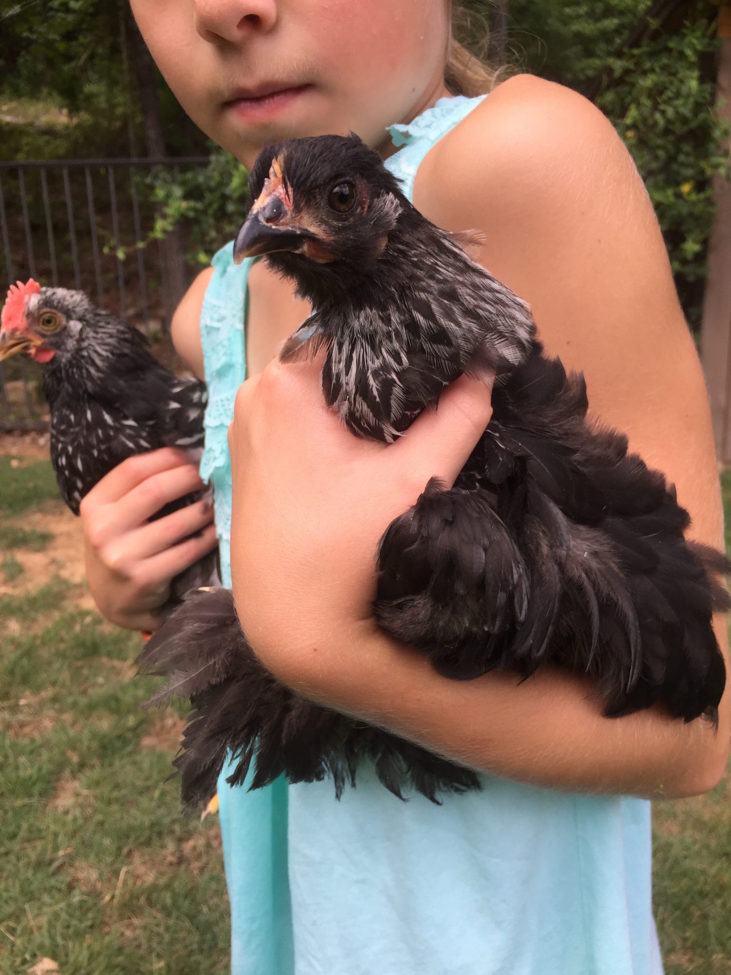 The top one is a boy. On the bottom picture, the one nearest to the camera is a girl. They look like Silver Laced Wyandottes, except for the leg feathering.