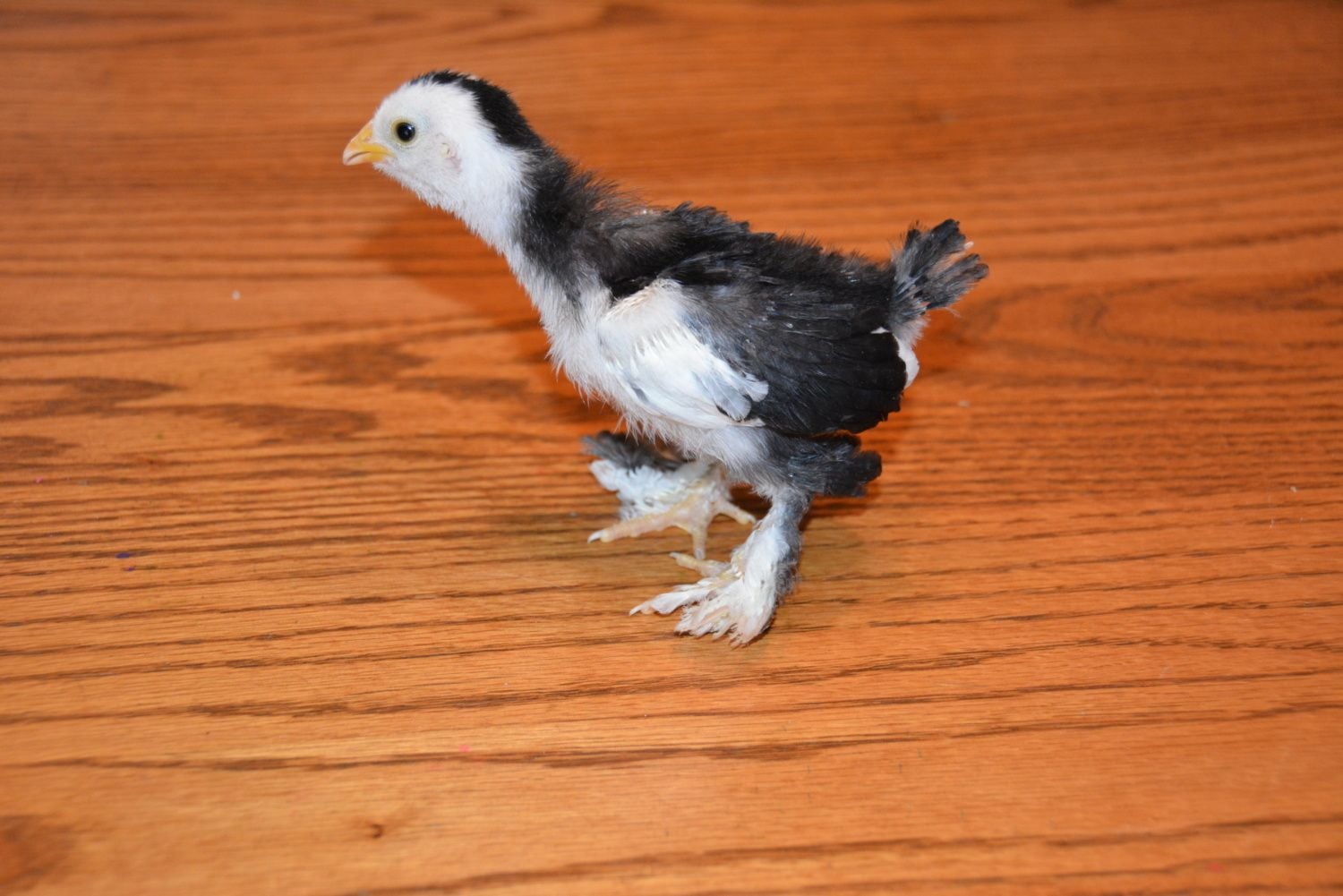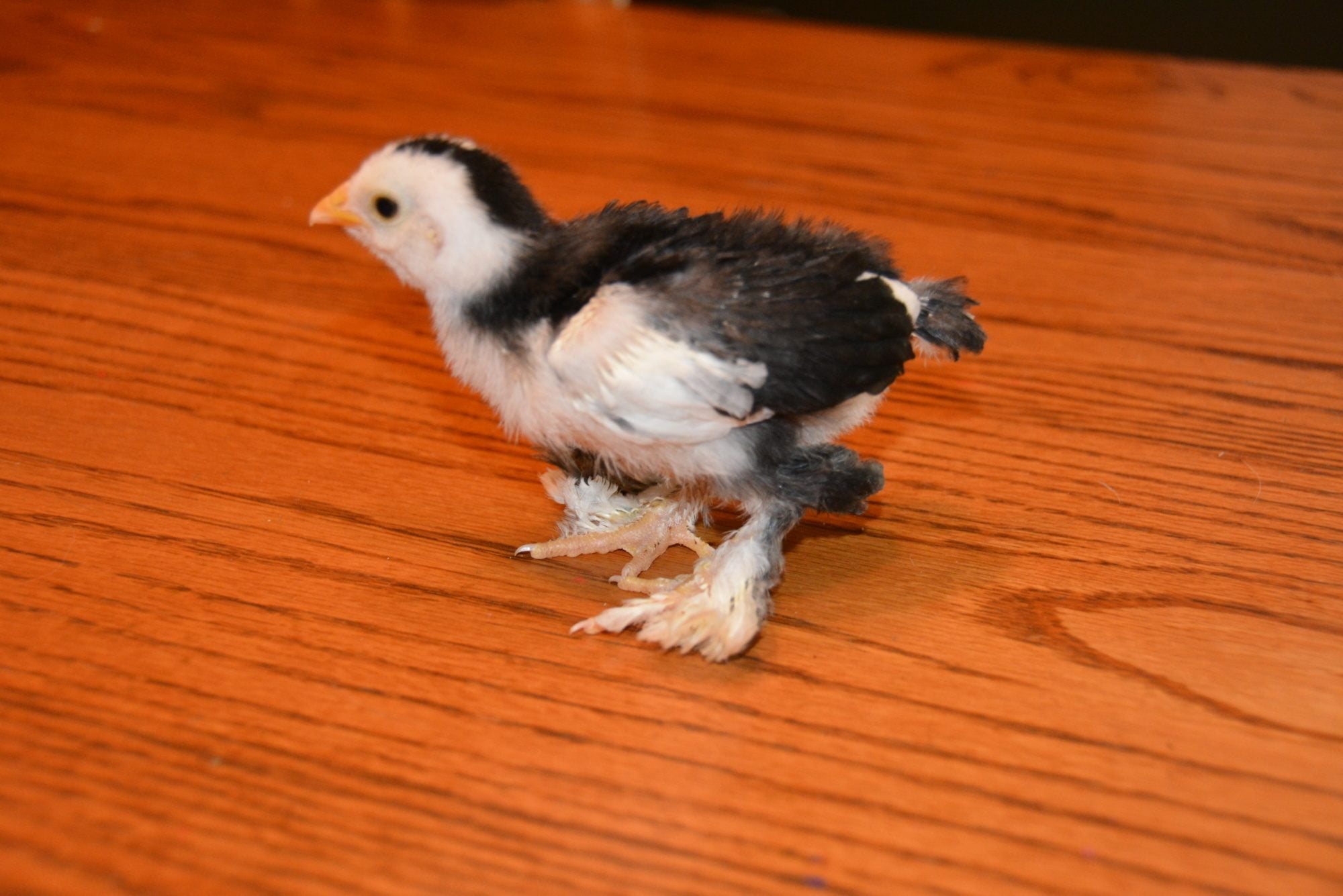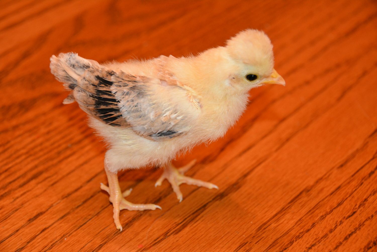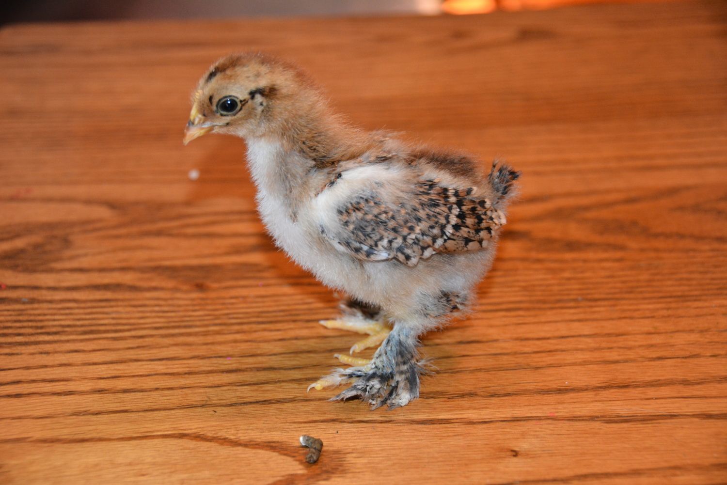 We've got 4 new chicks from an assorted bantam run. Can anyone help identify the breeds? All have feathered legs/feet except for the yellow one. Thank you in advance!