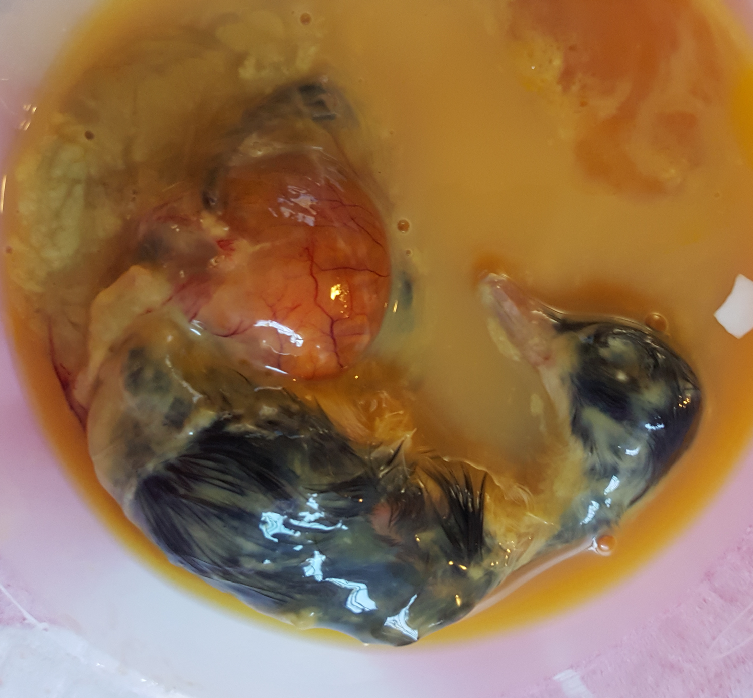 Sad day... tried to open and intervene, peeled a little bit of egg shell away making a pin hole and it didn't look good nor smell good so I opened it, other duck had already died inside and it's twin was dead surround by yolk. Maybe I should of let it turn longer?? This duck left just didn't look full term to me. I feel terrible. Did I mess up? Sorry for the graphic pic, I just want to be able to learn from this experience, it is my first. Hoping I didn't make a mistake opening this egg. This is a first hatch nightmare