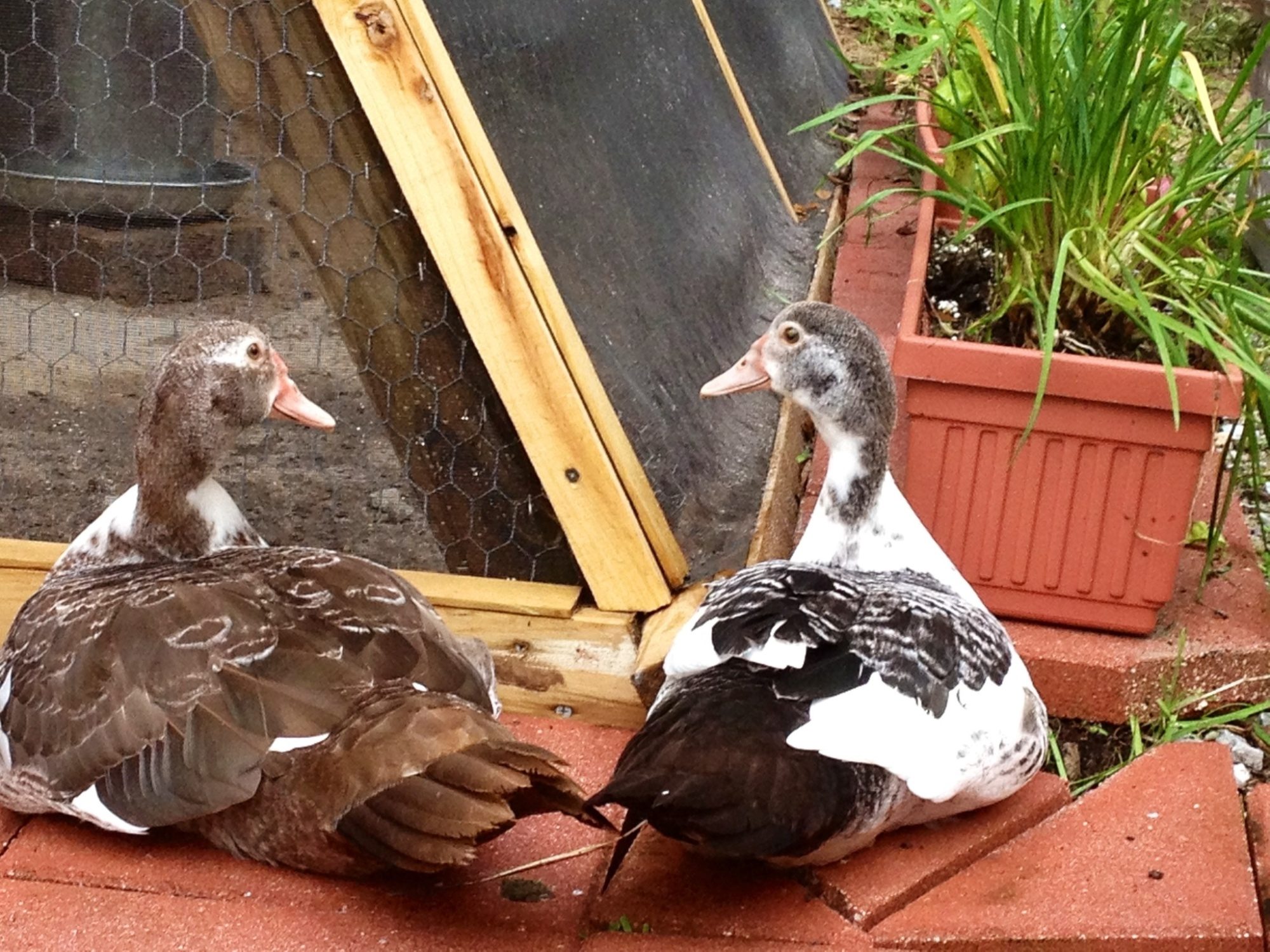 I was thinking that I will continue to risk them during the day (I did put up awnings and dog crates for them to dive into, I just worry they won't), but I am thinking that I might start locking them up at night. The silly Muscovy aren't even sleeping in the shelters I put up, but totally out in the most open part of the run! (Some areas of the run have lots of good cover) I don't sleep well knowing that they are sleeping like that.