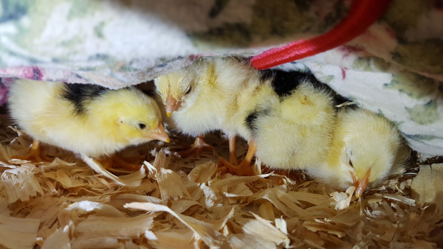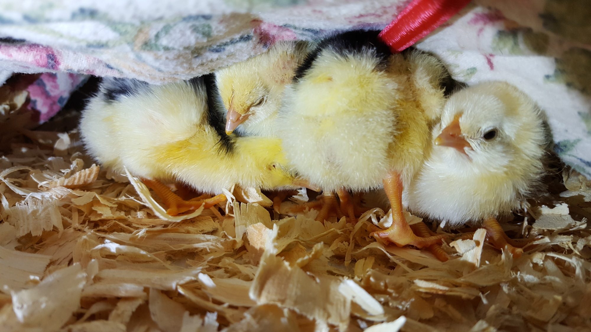 Day 22: 5 hatched over the past 2 days and are in the brooder. One that hatched last night, another one that hatched early this morning and one I assisted last night (head in the wrong end, stuck) are drying in the incubator still. Two more eggs to go! One has a pip!