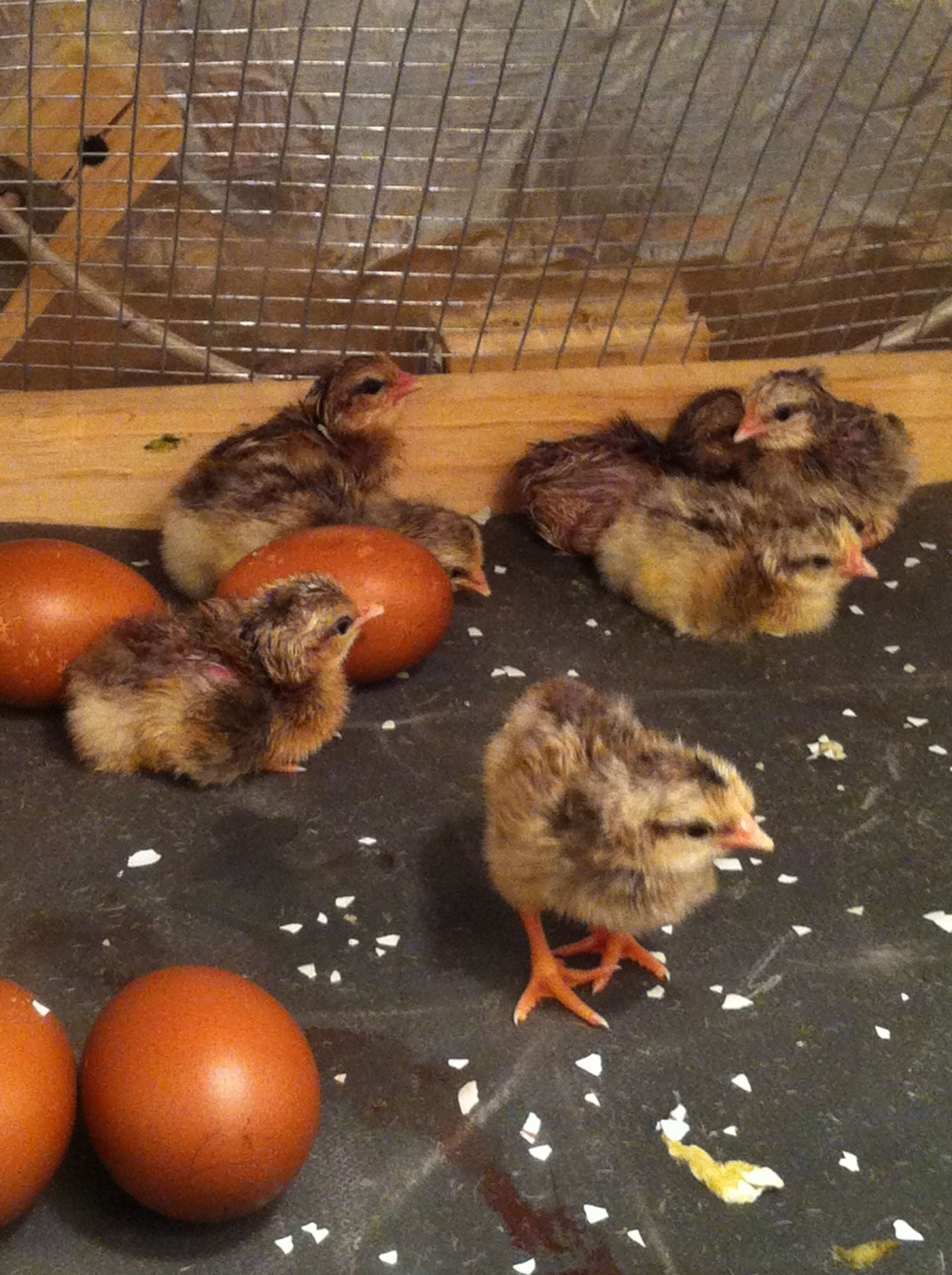 Here is a pic of the first 4. I have 7 hatched now with 3 more pipped.oh very nice...can't wait to see pictures...I have some due the 11th....come on over to the September thread
