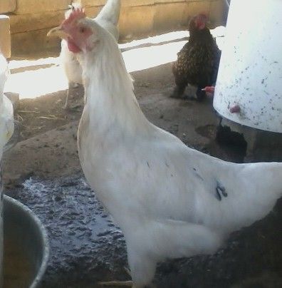 maybe California white? I'm not real sure, because wouldn't that make their earlobes mostly white also?I think you have Austra Whites instead of White Leghorns. That's why the eggs are cream colored or light brown. At a distance your birds look like White Leghorns, but when I enlarge your photos, it appears that they have a few very small black spots on them (less than Austra Whites usually have).