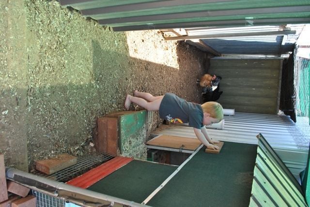 And here's the run. It's bigger than it appears - just hard to get a good photo angle with the veggie patch in the way and my GIANT 34 week pregnant belly.