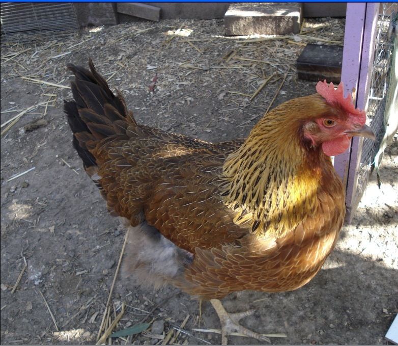Mandy - my Welsummer - a very big girl and still strugglilng with a very slow moult.