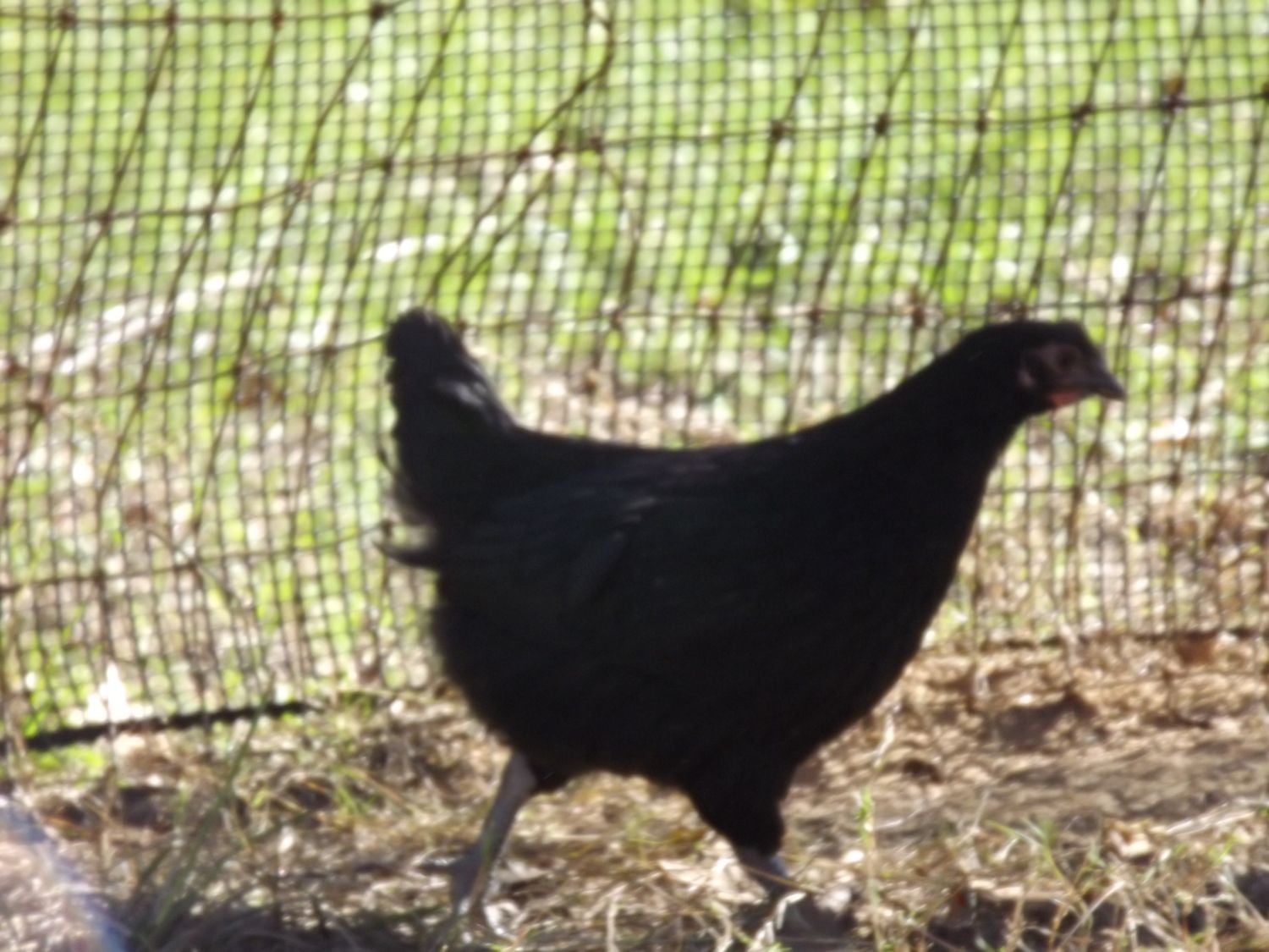 Mr. T...great green and purple sheen in the daylight. His comb has always been black. It is just starting to show some pink also. Matured faster than the other birds. 9 wks