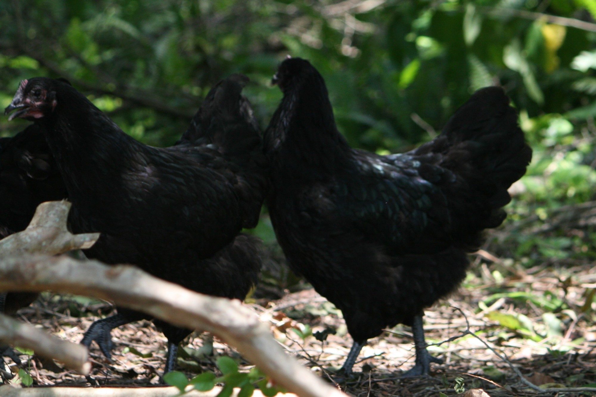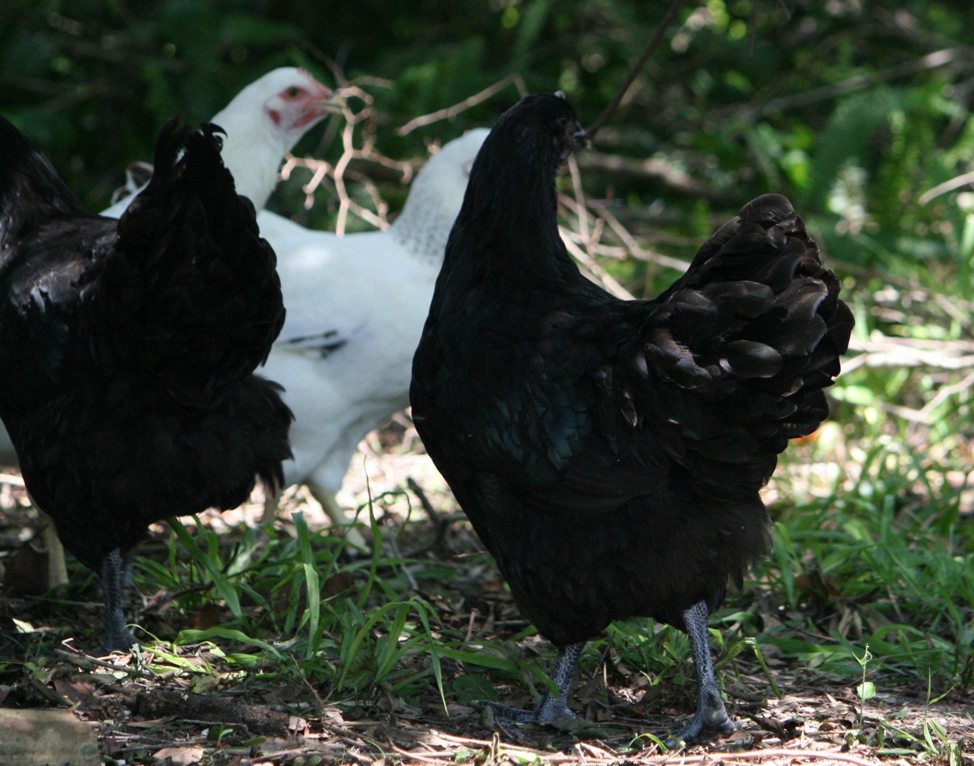 A couple of pullets for fall breeding. Sorry they are so dark, I didn't want to make them stand out in the hot sun to show off their green sheen. ........stan