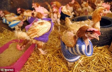The byline says she was knitting for rescue ones but I don't think the chickens in her photo are very needy looking lol. Not breeds generally associated with battery farming, I think they got picked for their cuteness factor