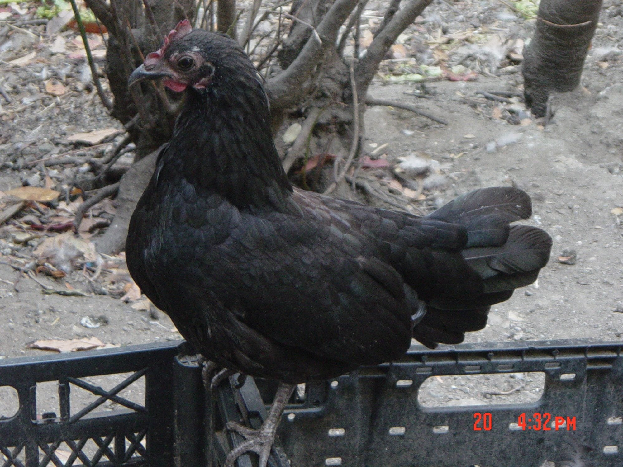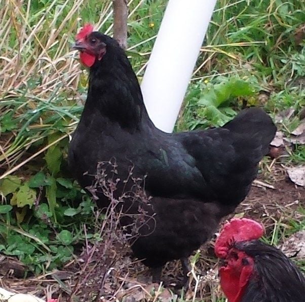 Peepers showing off her sheen. Gonna keep an eye out for that egg. I am wondering why the color of her comb and wattles isnt very deep red. Too old for attracting male attention? None of my rooster went after her once she was introduced to the yard.